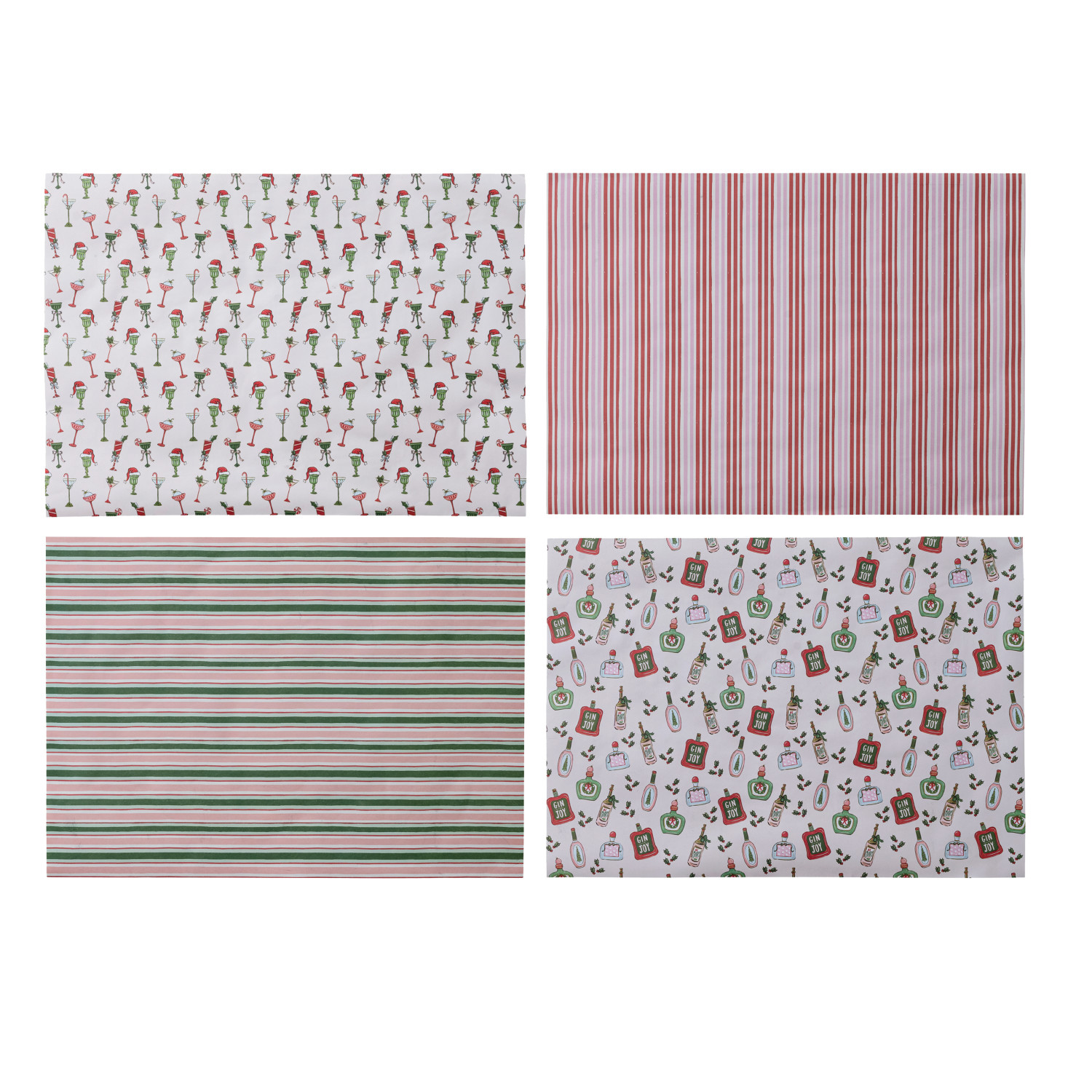 Catalog Name: 28"L x 20"W Handmade Printed Recycled Wrapping Paper Sheets w/ Cocktail/Stripes Pattern, Multi Color, Set of 12 Rolls in Kraft Display Box (4 Styles, 3 Rolls Per Style, 3 Sheets Per Roll) ©