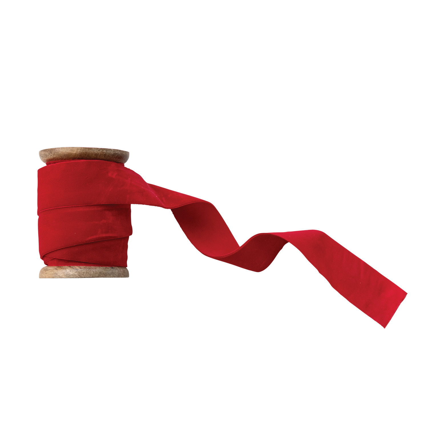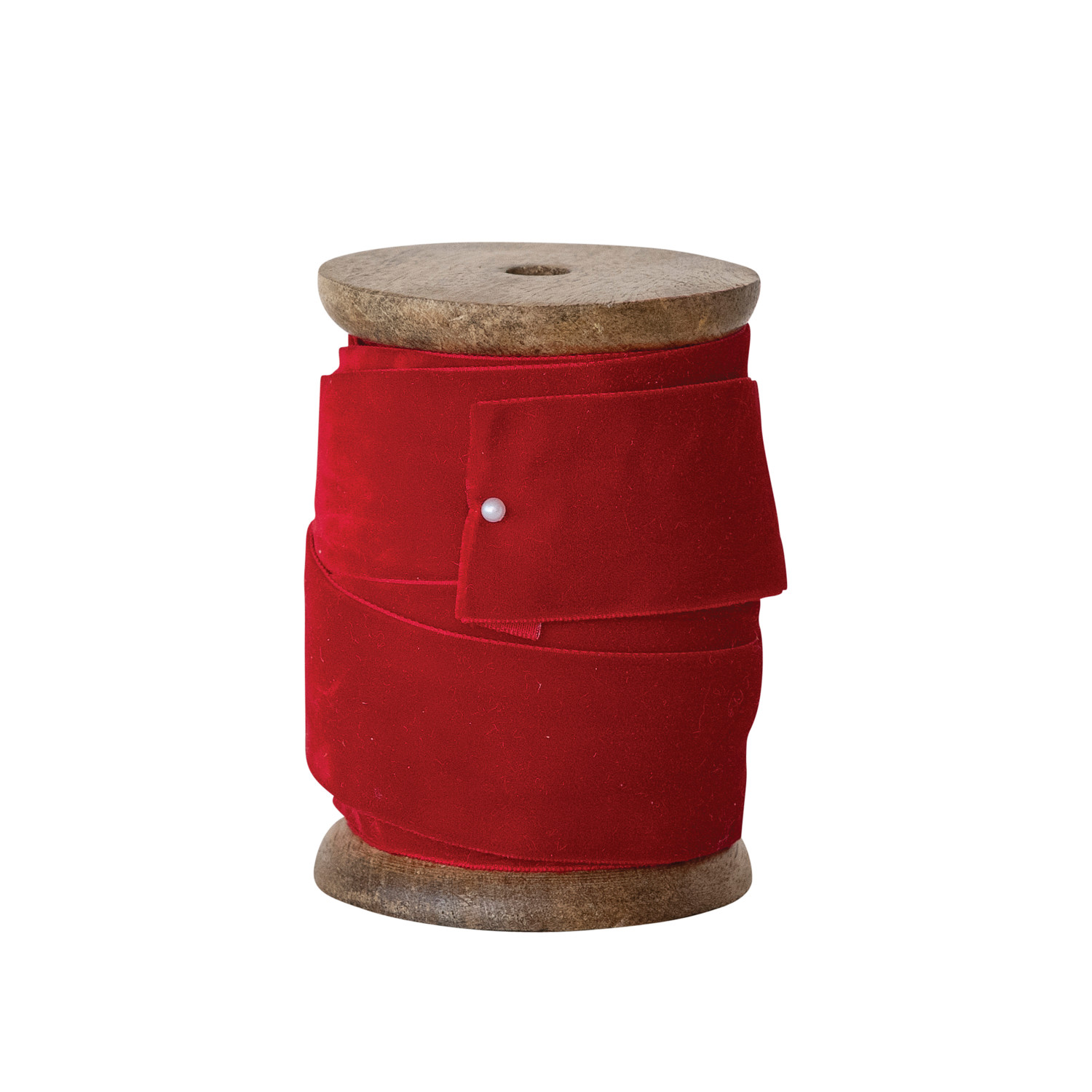 5 Yard 1-1/2"W Velvet Ribbon on Wood Spool, Red
