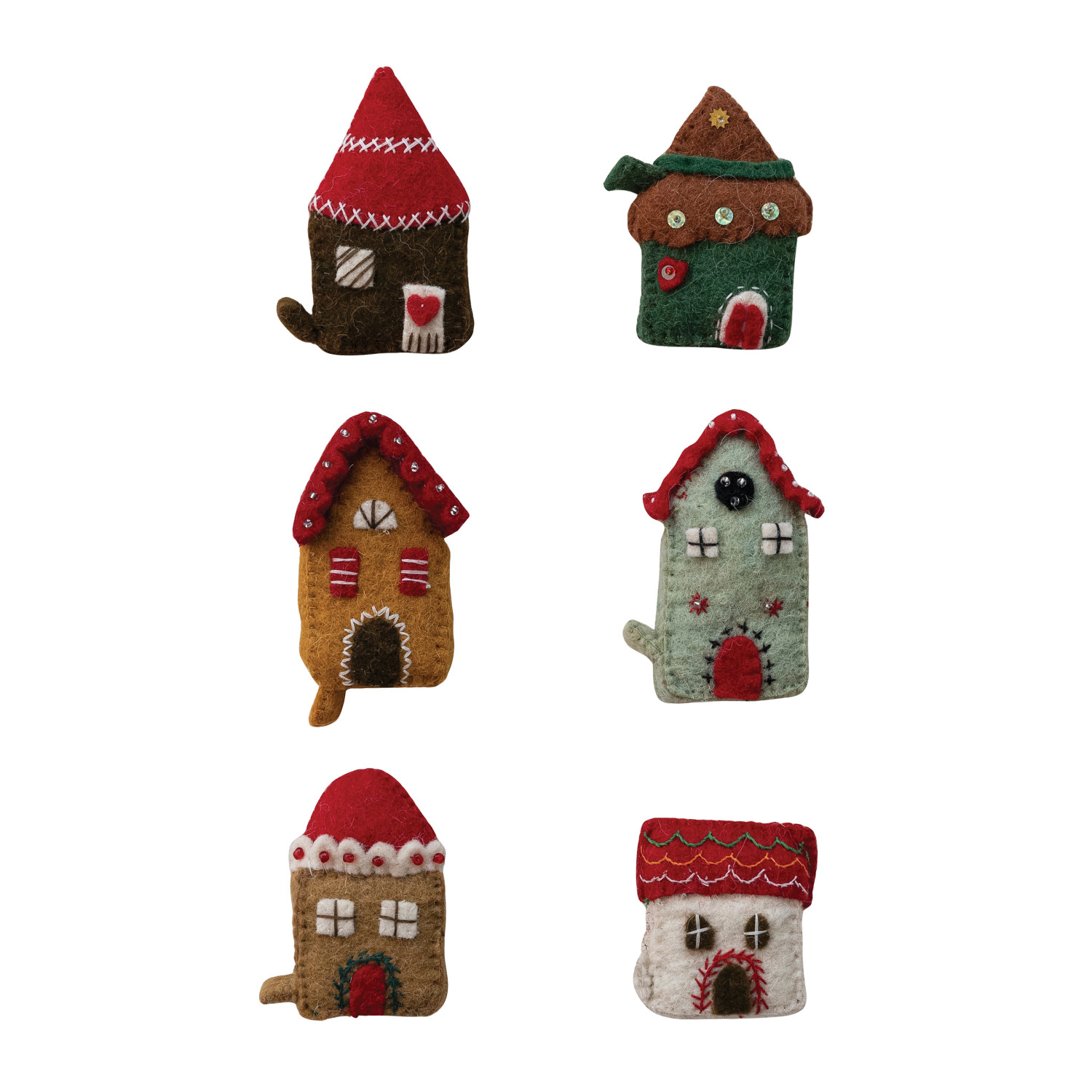 Handmade Embroidered Wool Felt House Shaped Tape Measure, 6 Styles (Each Measures 5 Feet)