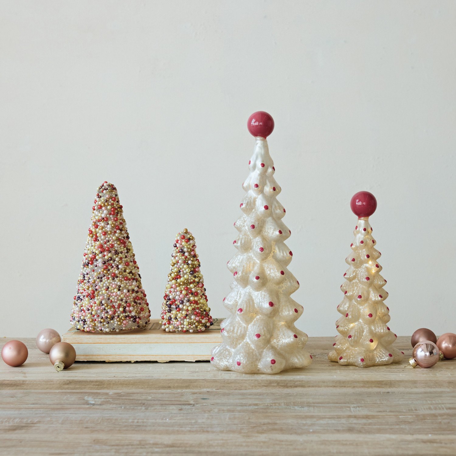 Mercury Glass Tree with Dots, Ball Topper & LED Light (Batteries Included)