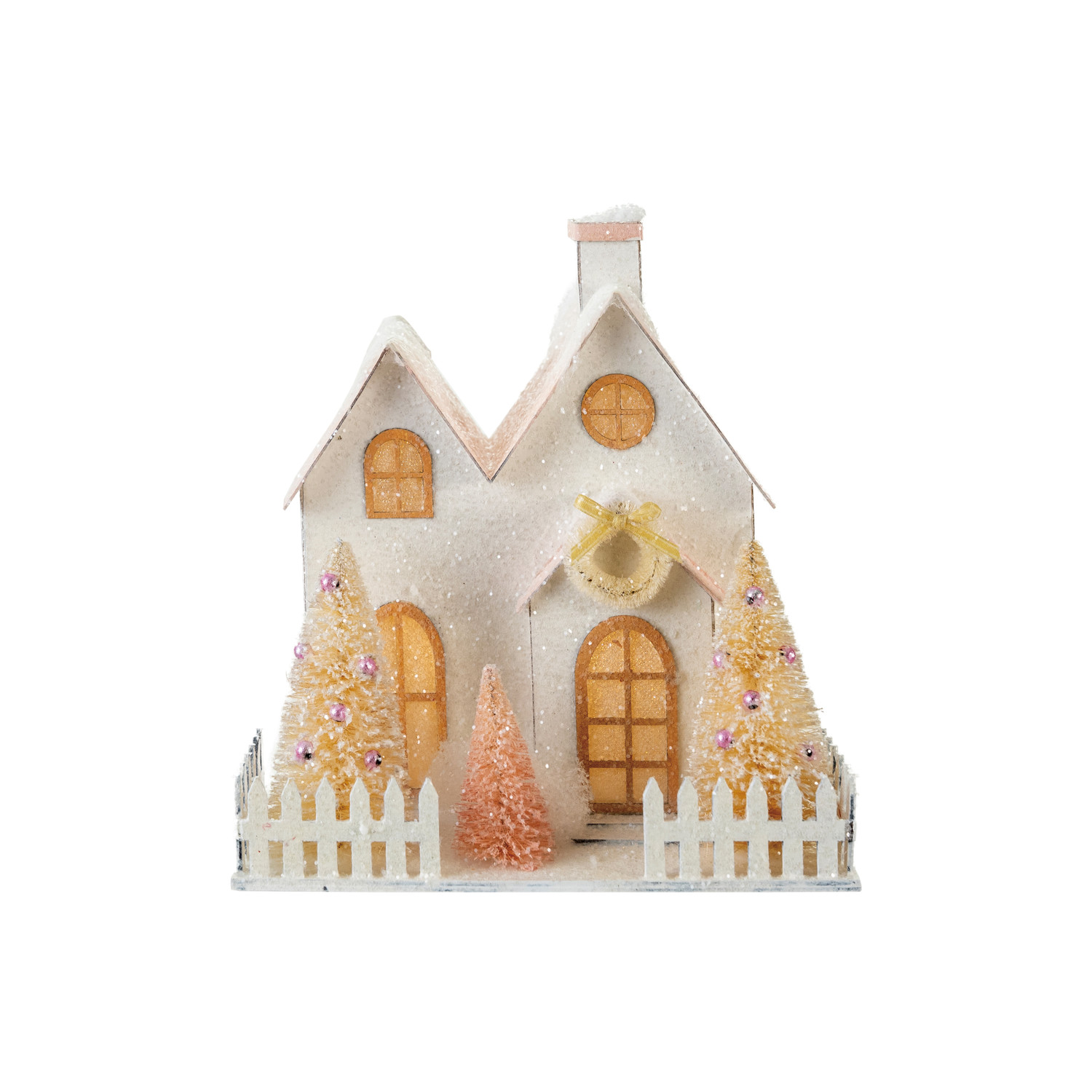 Paper House with Sisal Bottle Brush Trees, Glitter & LED Light (Batteries Included)