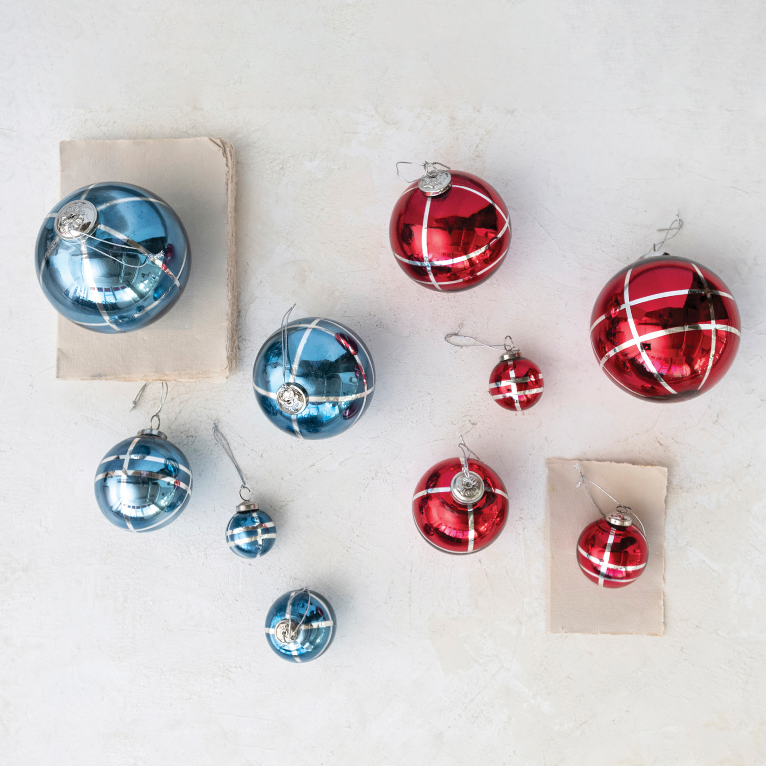 This festive mercury glass ornament features a grid design reminiscent of a plaid print. Ornaments can be showcased as decorations on a Christmas tree, wreath, or atop a festive centerpiece, hung from doorways, displayed on mantels, used to embellish cards and presents, or given as gifts.
