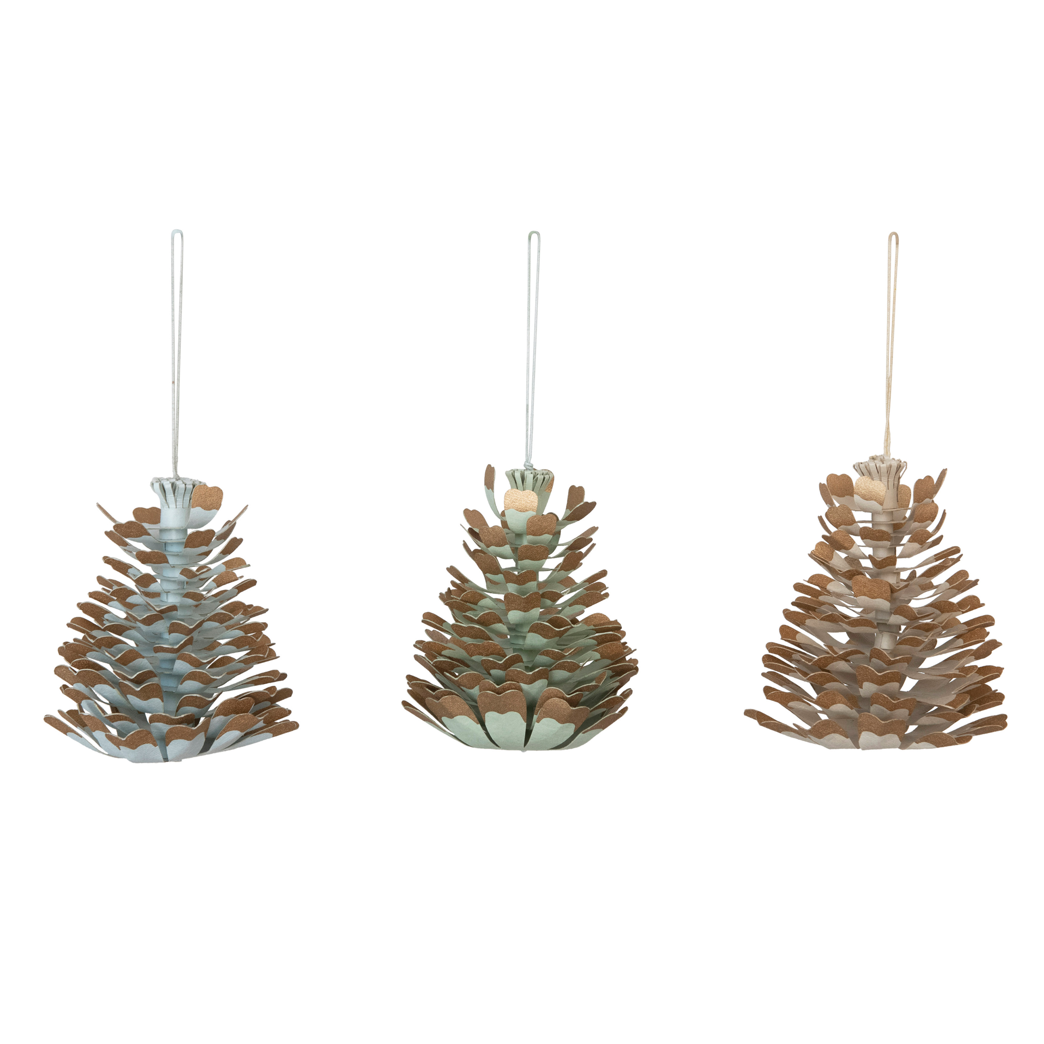 5"H Handmade Recycled Paper Pinecone Ornament in Box, 3 Colors