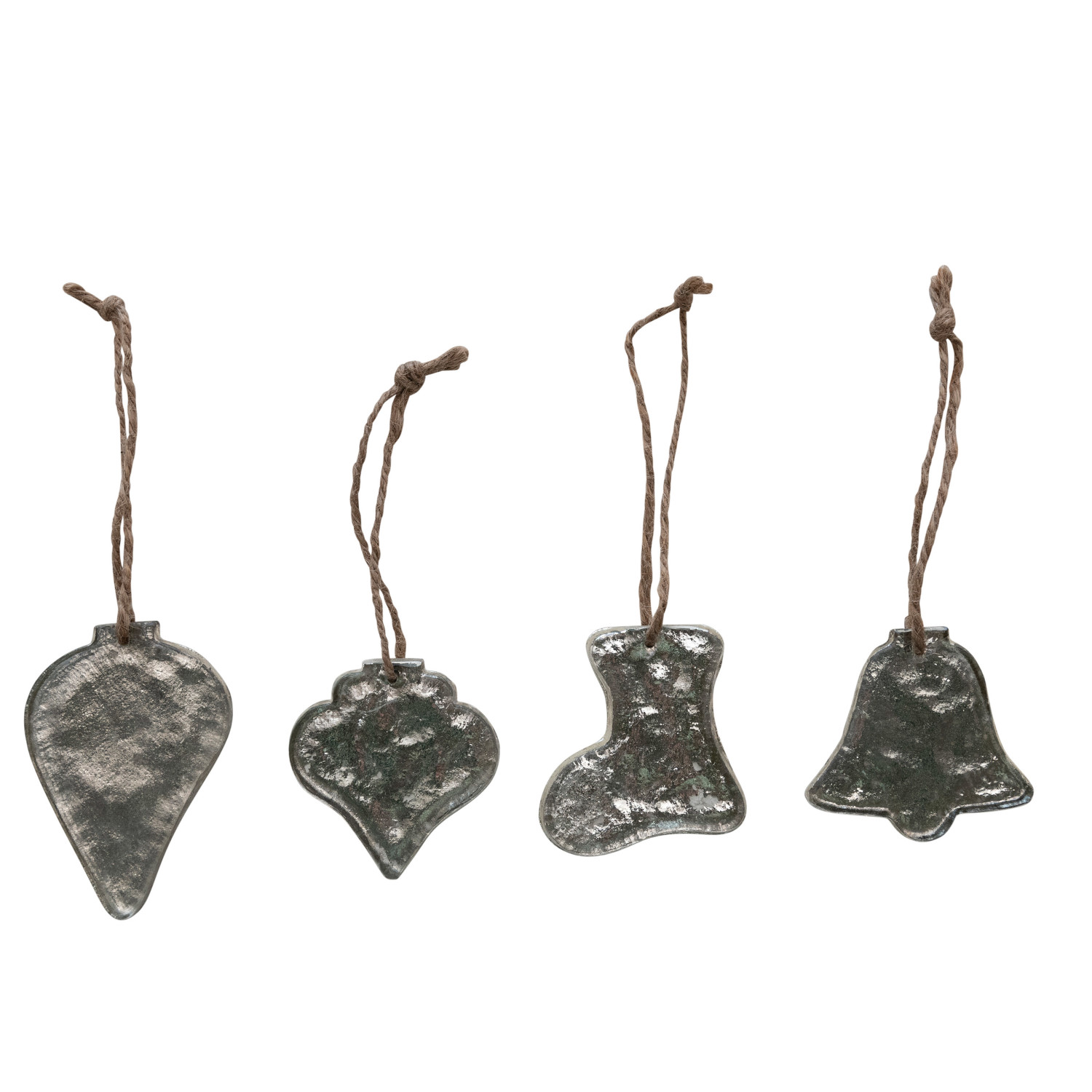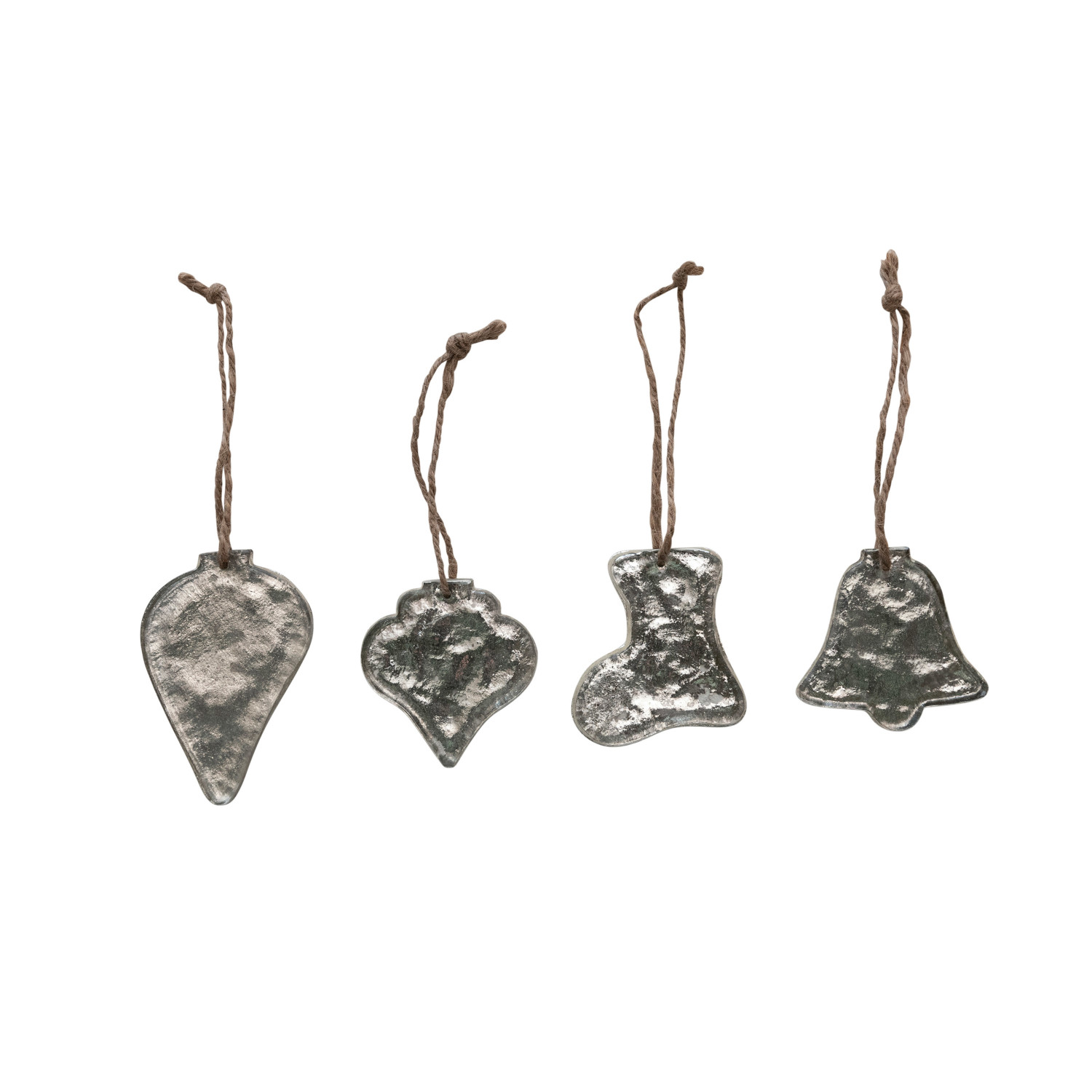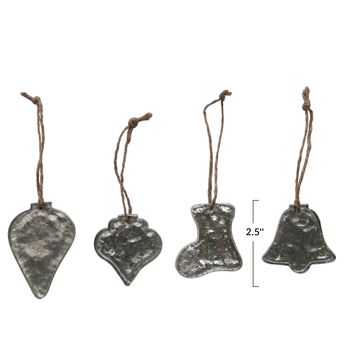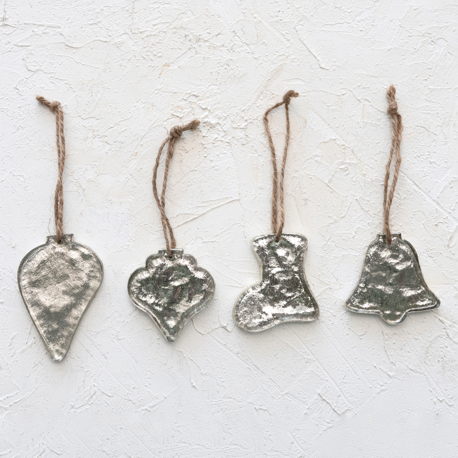 2-1/2"H Pressed Mercury Glass Ornament, Silver Finish, 4 Styles