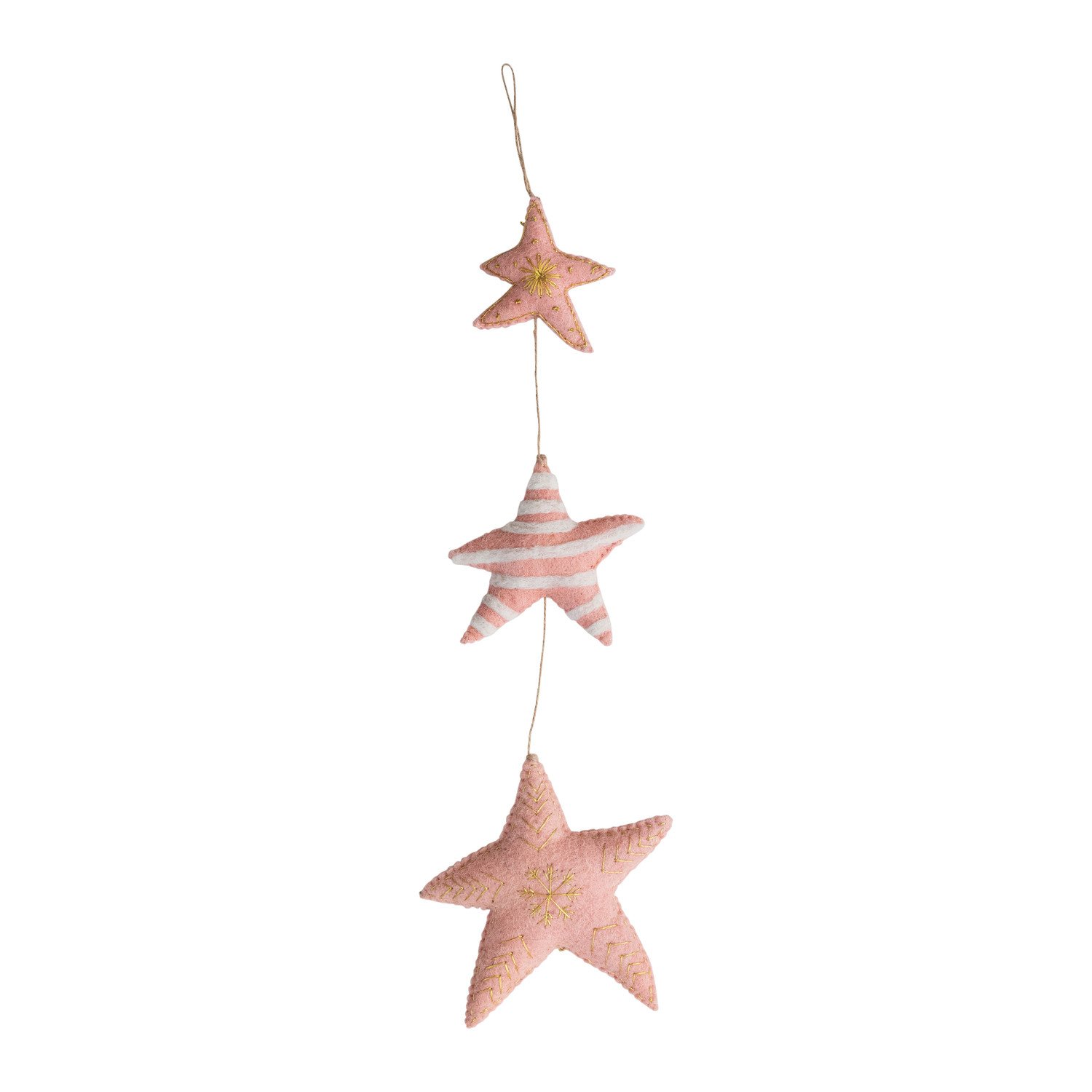 Catalog Name: 19"H Handmade Wool Felt Stars Hanging w/ Metallic Thread Embroidery, Blush & Cream Color ©
