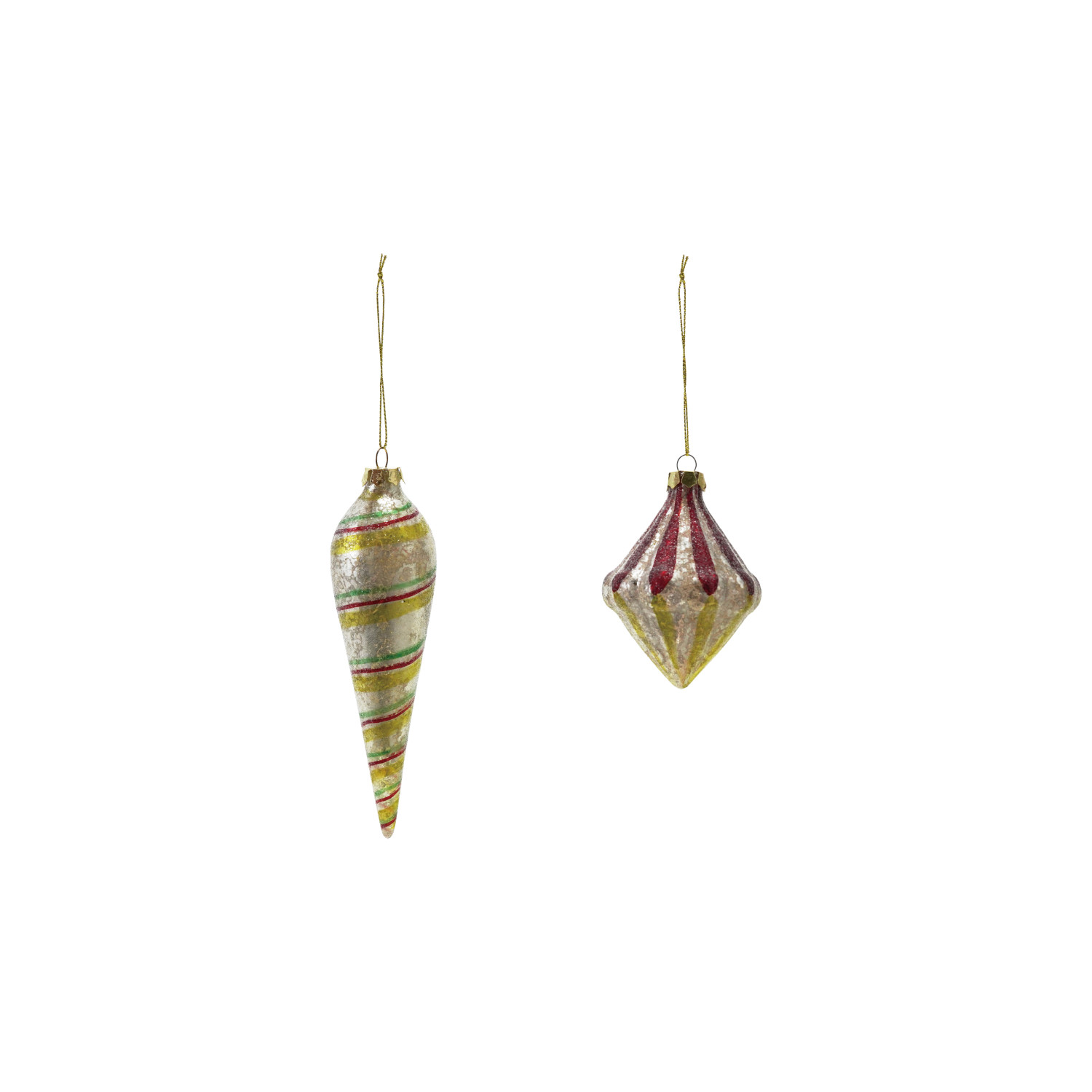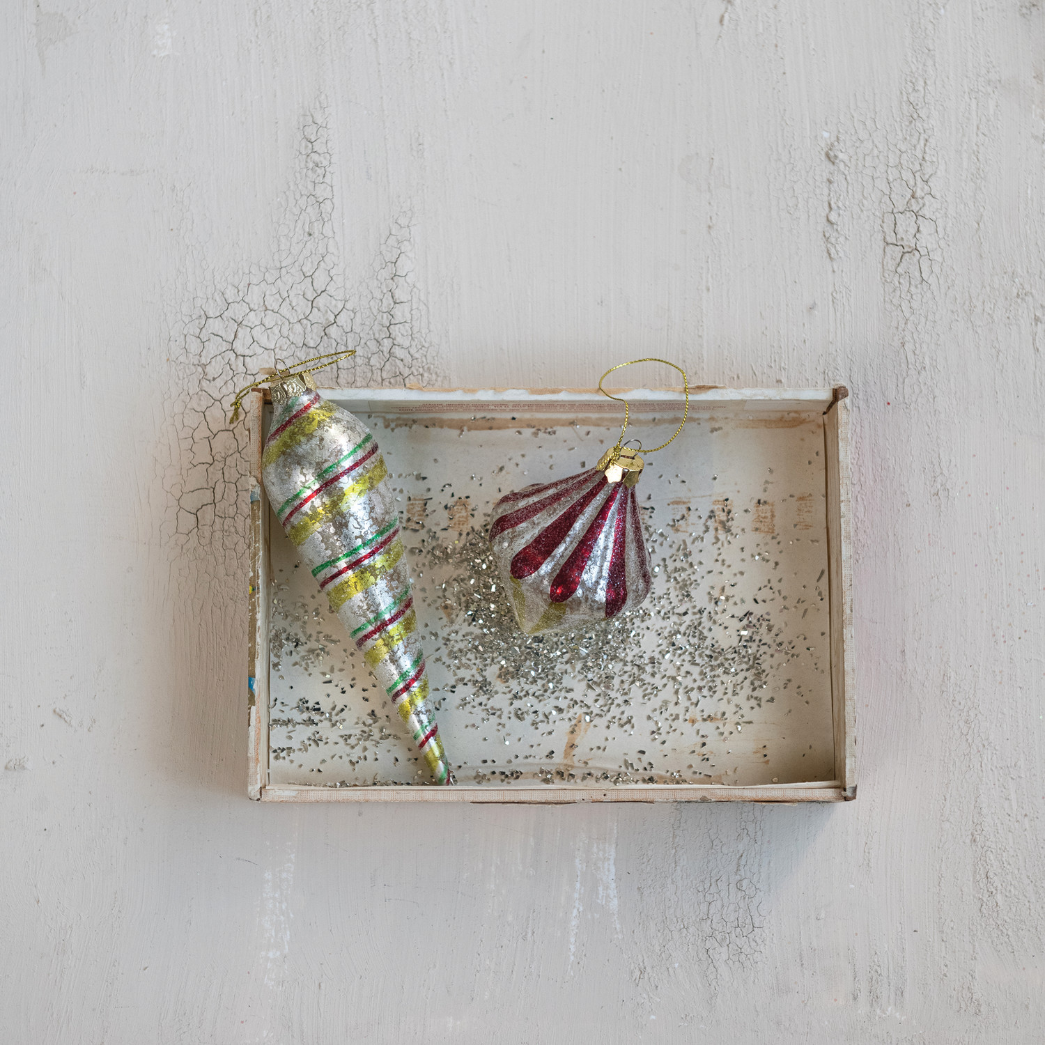 Mercury Glass Ornament with Stripes, Red & Green, 2 Styles