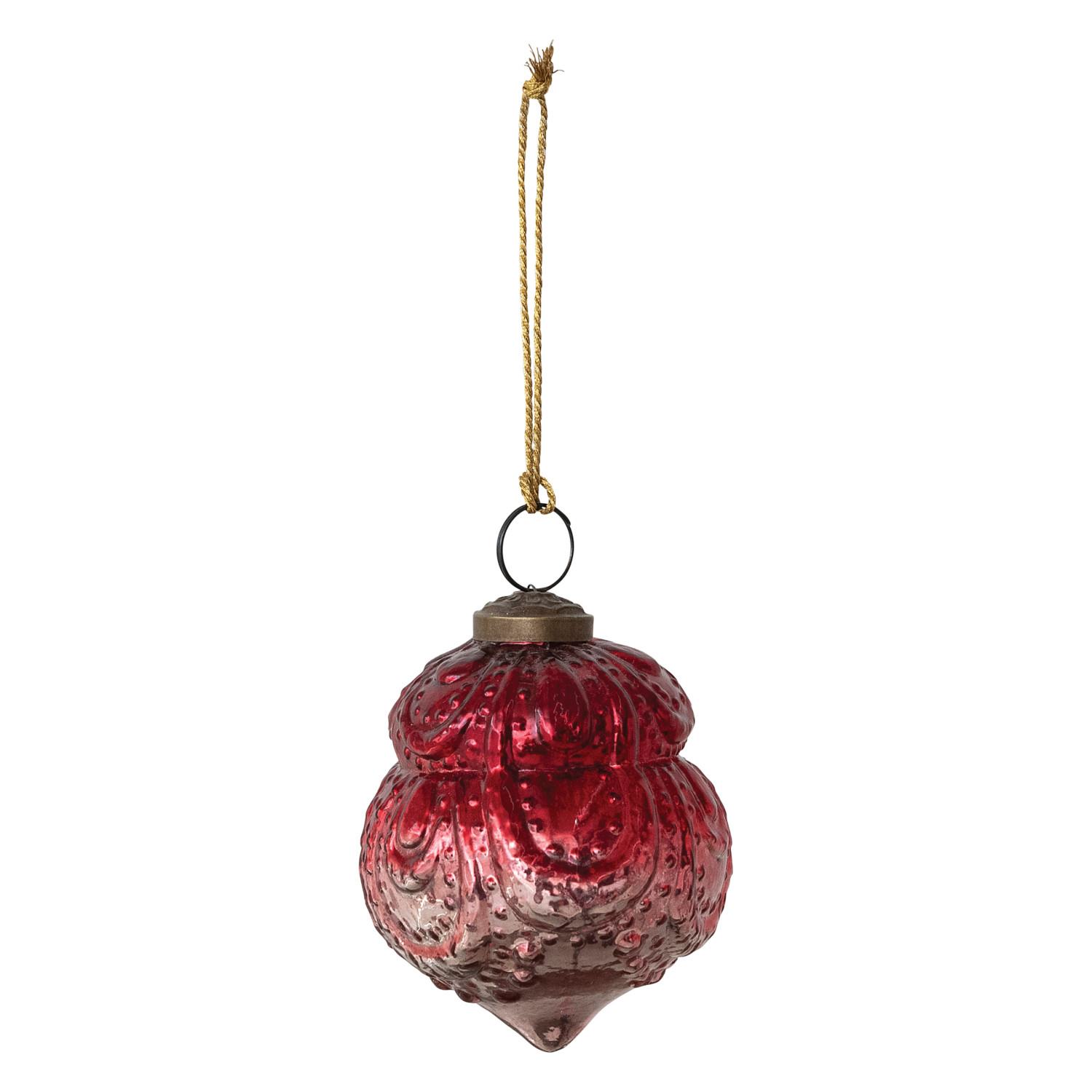 Catalog Name: 4"H Hand-Painted Embossed Mercury Glass Ornament, Ombre Red