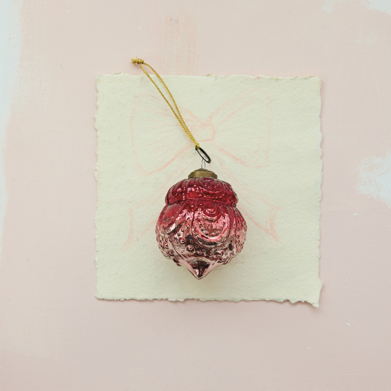 Hand-Painted Embossed Mercury Glass Ornament, Ombre Red
