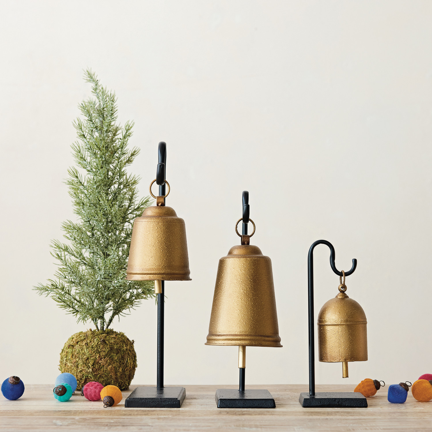 Metal Bell with Stand, Antique Gold Finish & Black, Set of 2