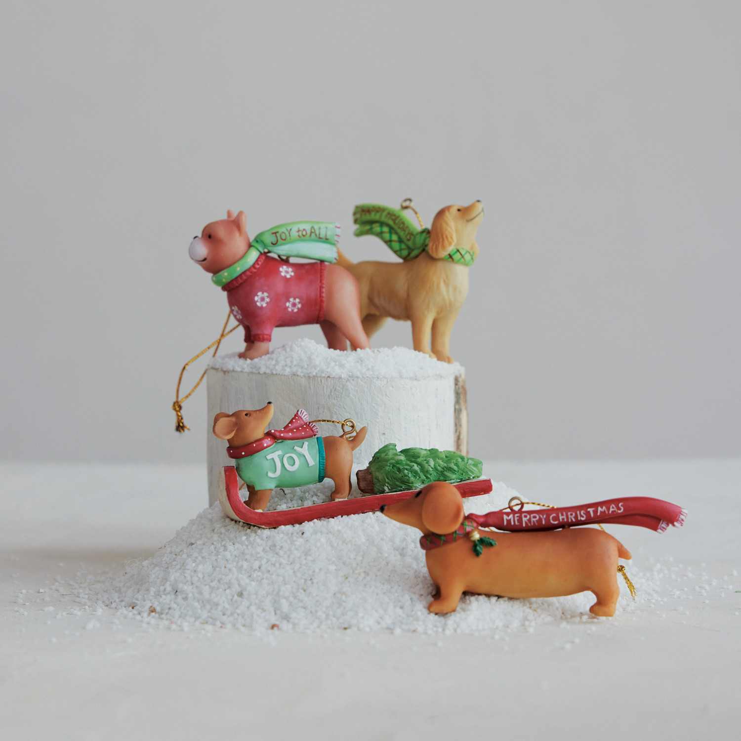 Resin Dog Shaped Ornament with Scarf & Saying, 4 Styles ©