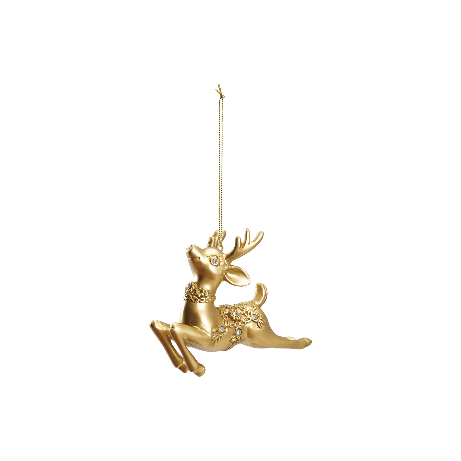 Catalog Name: 4-1/2"H Resin Reindeer Ornament w/ Crystals, Gold Finish