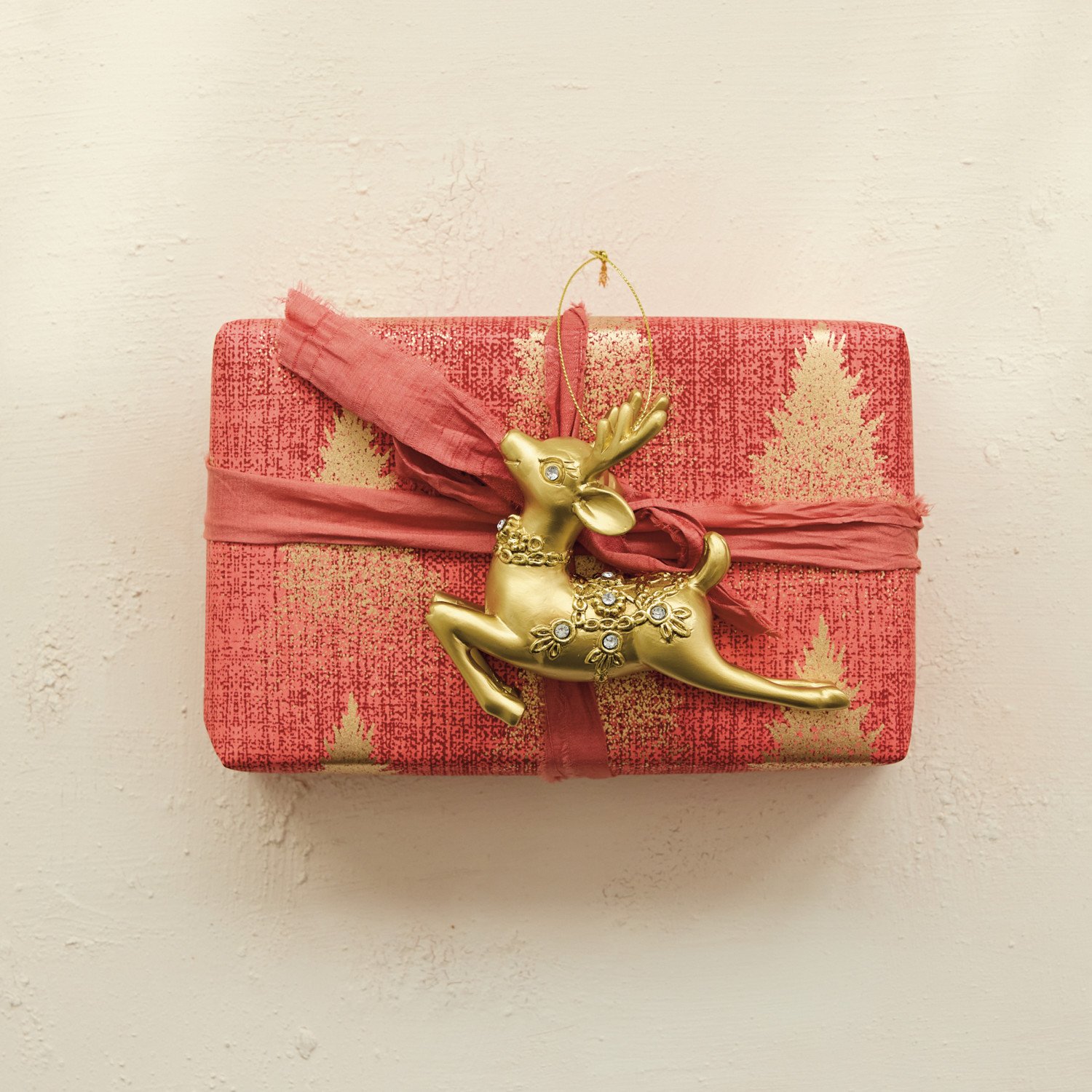 Resin Reindeer Ornament with Crystals, Gold Finish