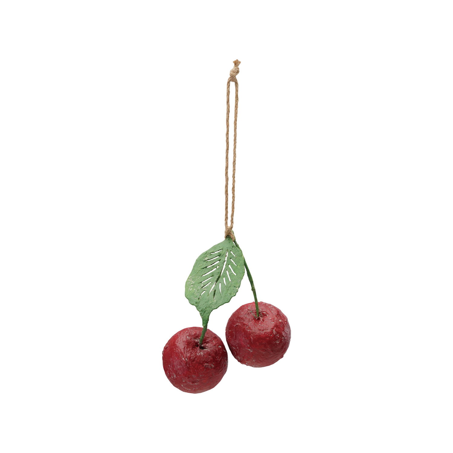 Handmade Paper Mache Cherries Ornament, Red & Green