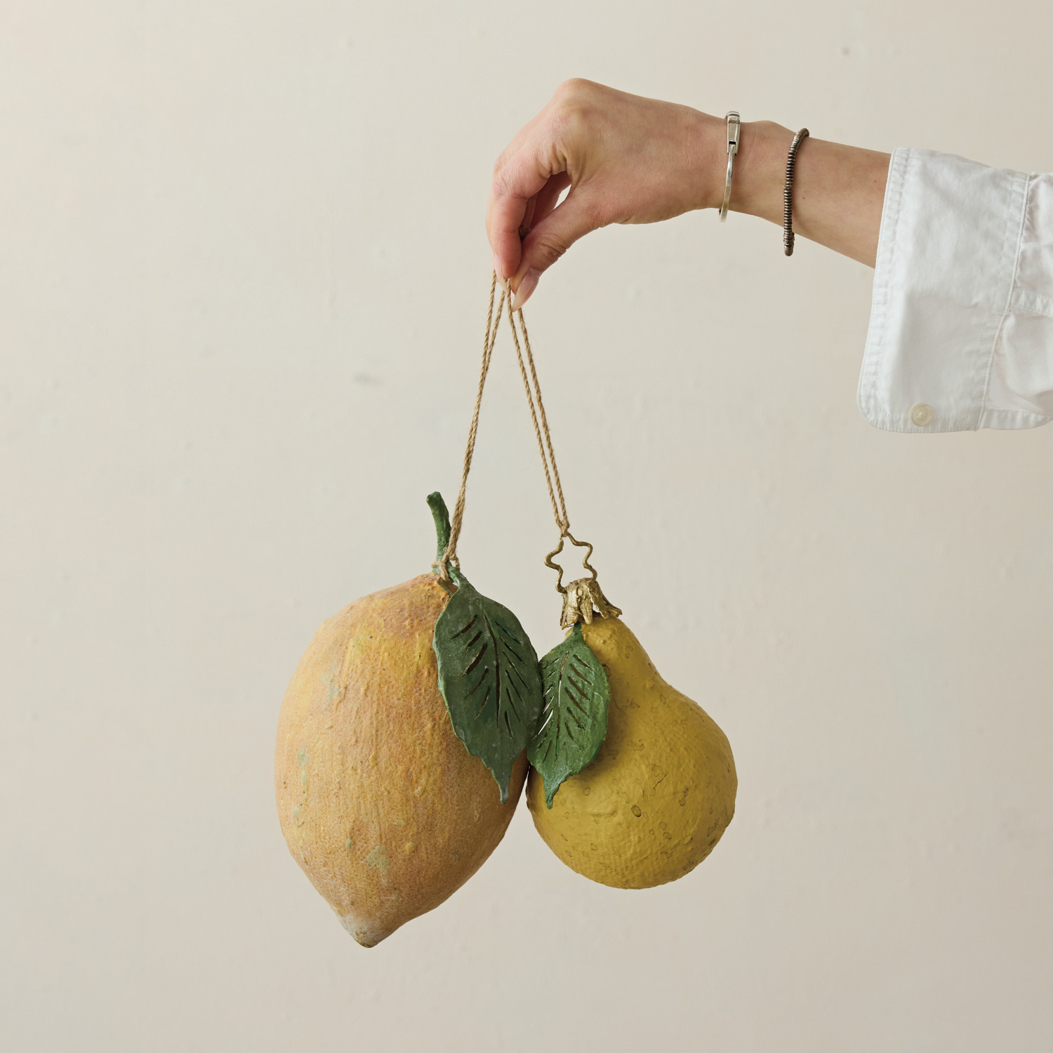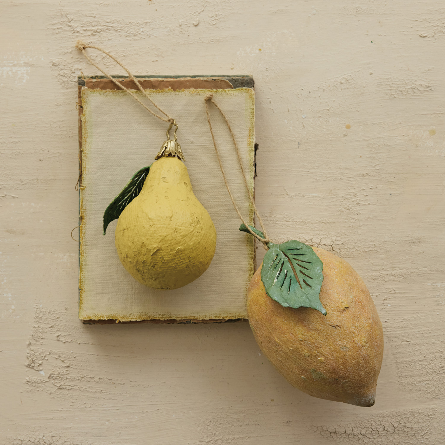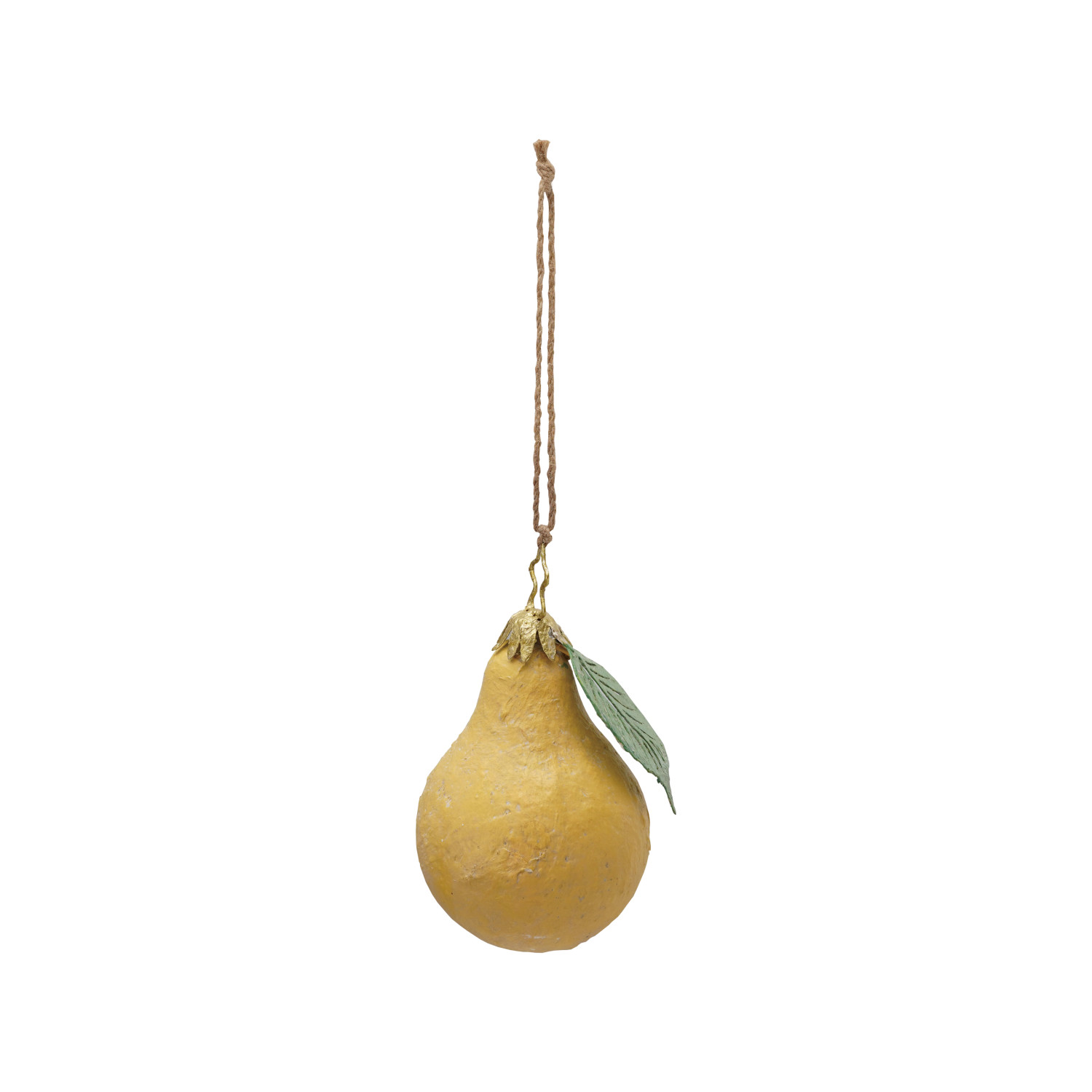 Catalog Name: 7-1/4"H Paper Mache Pear Ornament, Yellow & Green