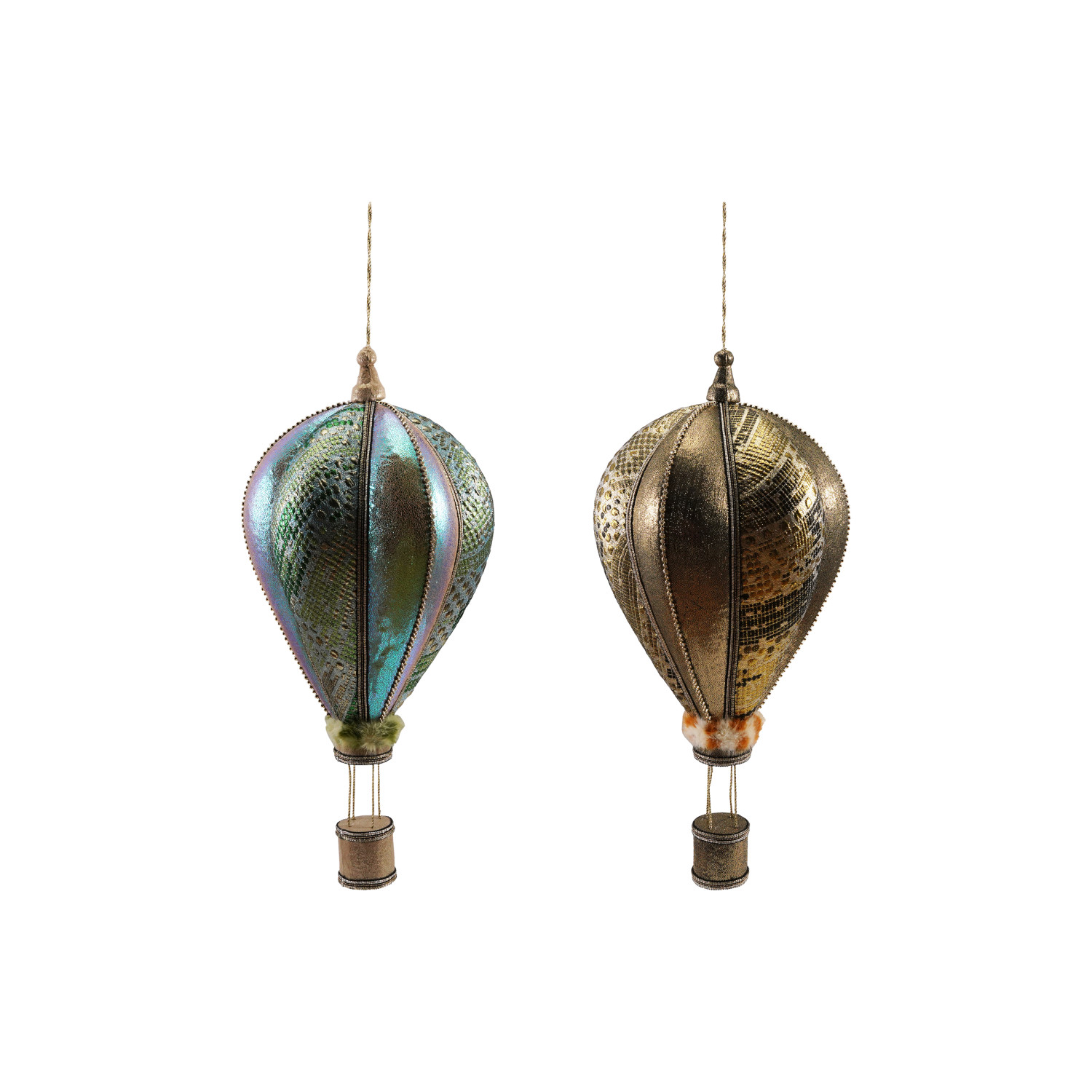 Catalog Name: 11" Round x 23-1/2"H Oversized Foam & Fabric Hanging Hot Air Balloon w/ Jewels, Glitter & Faux Fur, Multi Color, 2 Styles