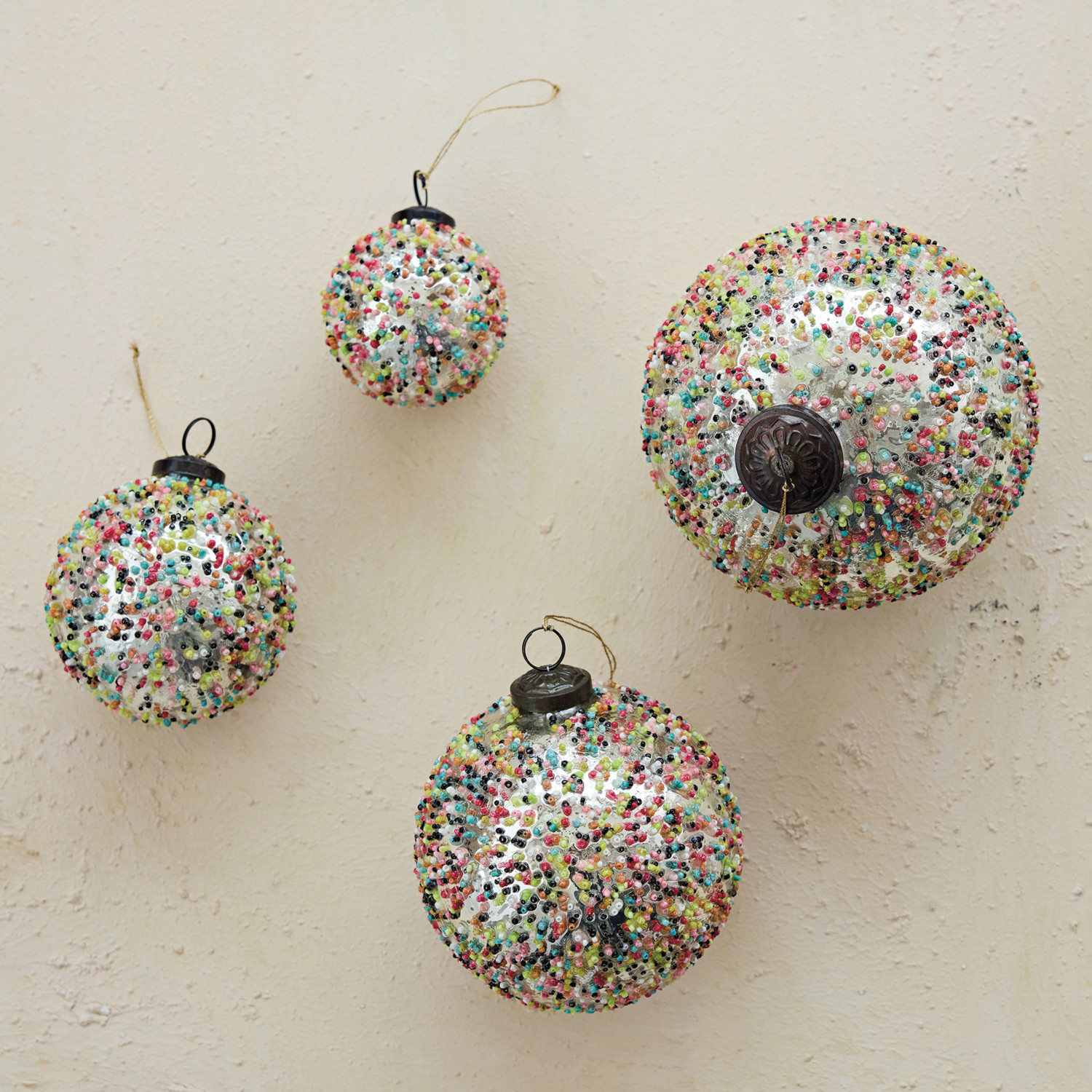 Mercury Glass Ball Ornament with Confetti Beads