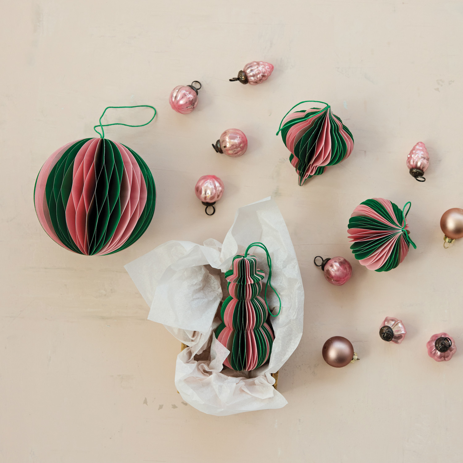 Handmade Recycled Paper Folding Honeycomb Finial Ornament, Green & Pink, 2 Styles