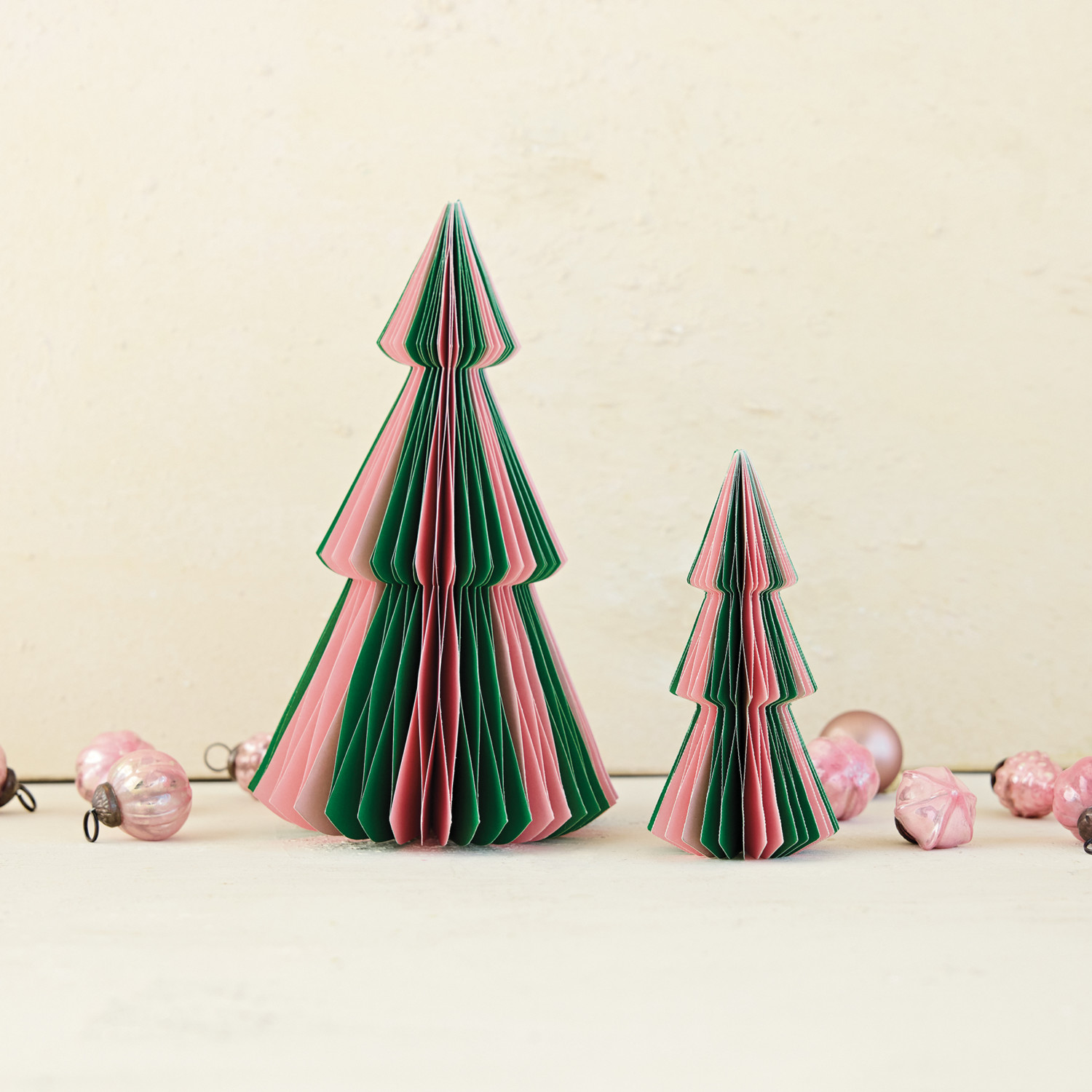 Handmade Recycled Paper Folding Honeycomb Tree, Green & Pink