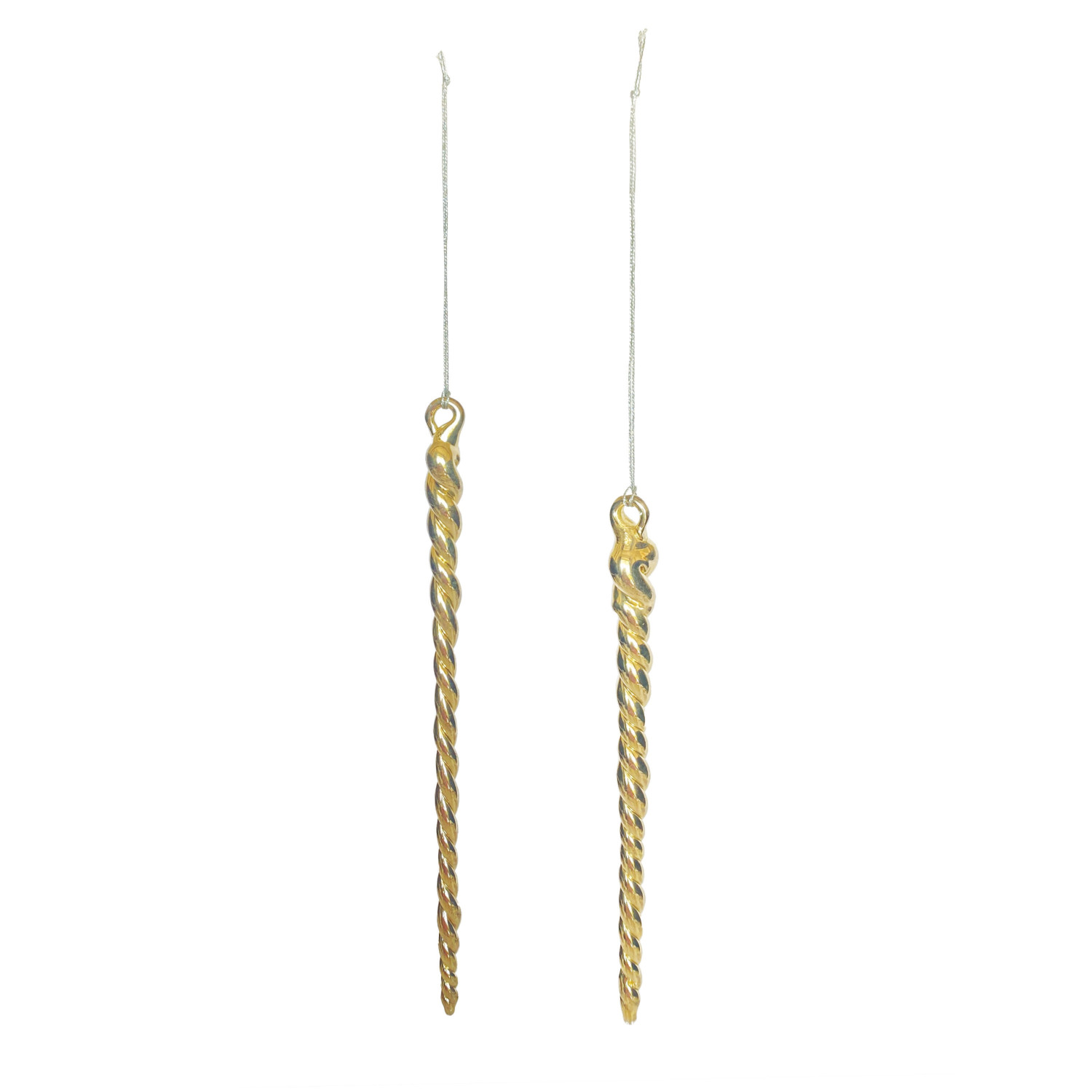 Catalog Name: 6"H - 8-1/4"H Hand-Blown Glass Icicle Ornament, Silver Finish, 2 Styles