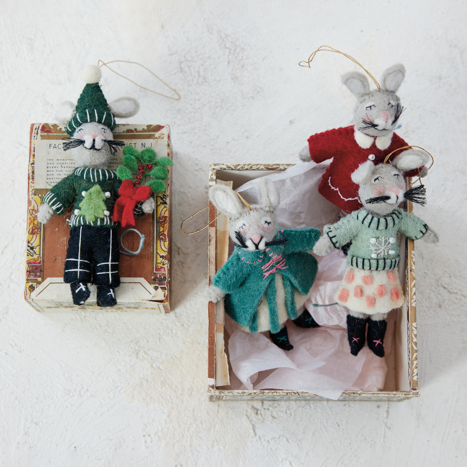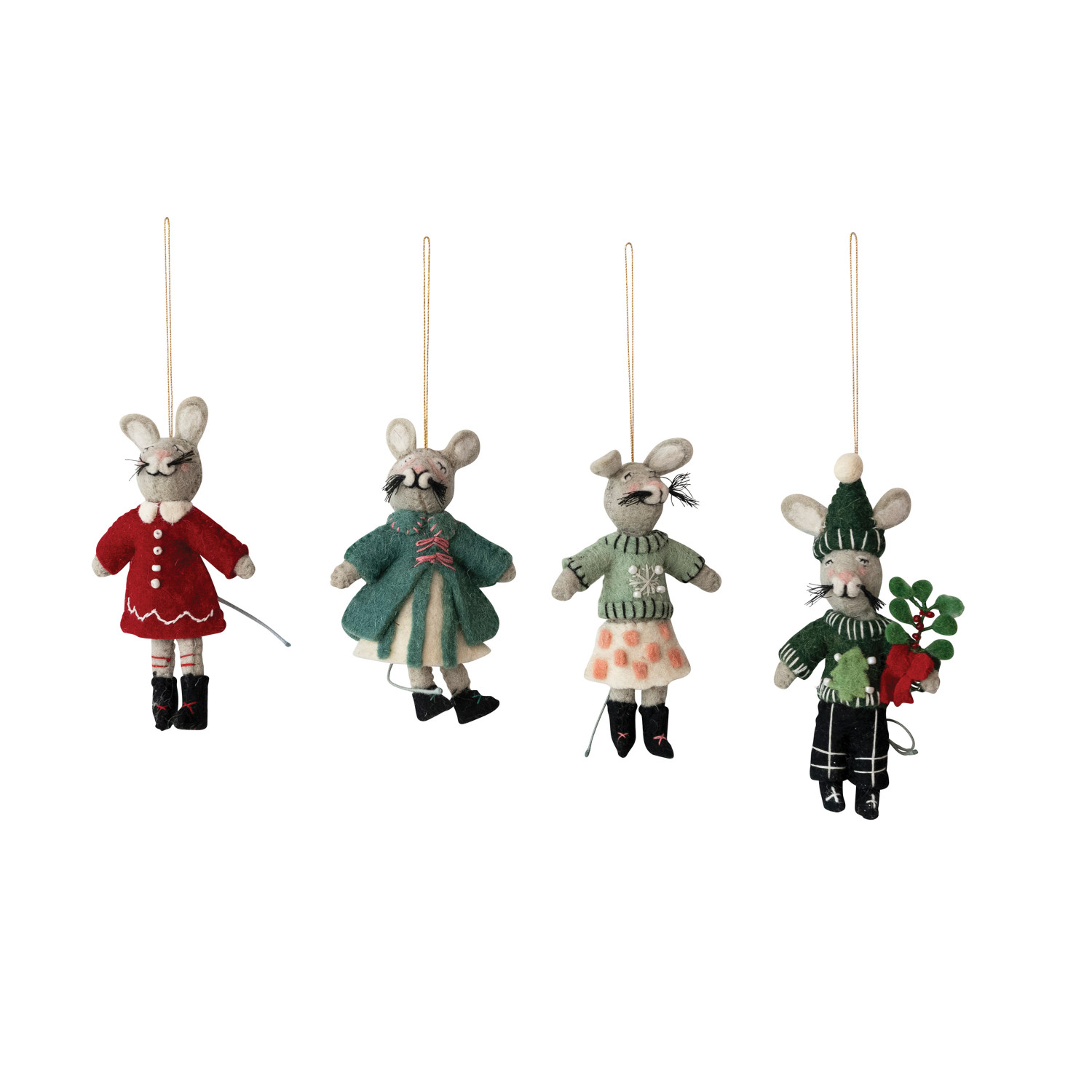 Catalog Name: 5"H - 6-1/2"H Handmade Wool Felt Mouse in Winter Clothes Ornament w/ Embroidery & Beads, Multi Color, 4 Styles ©