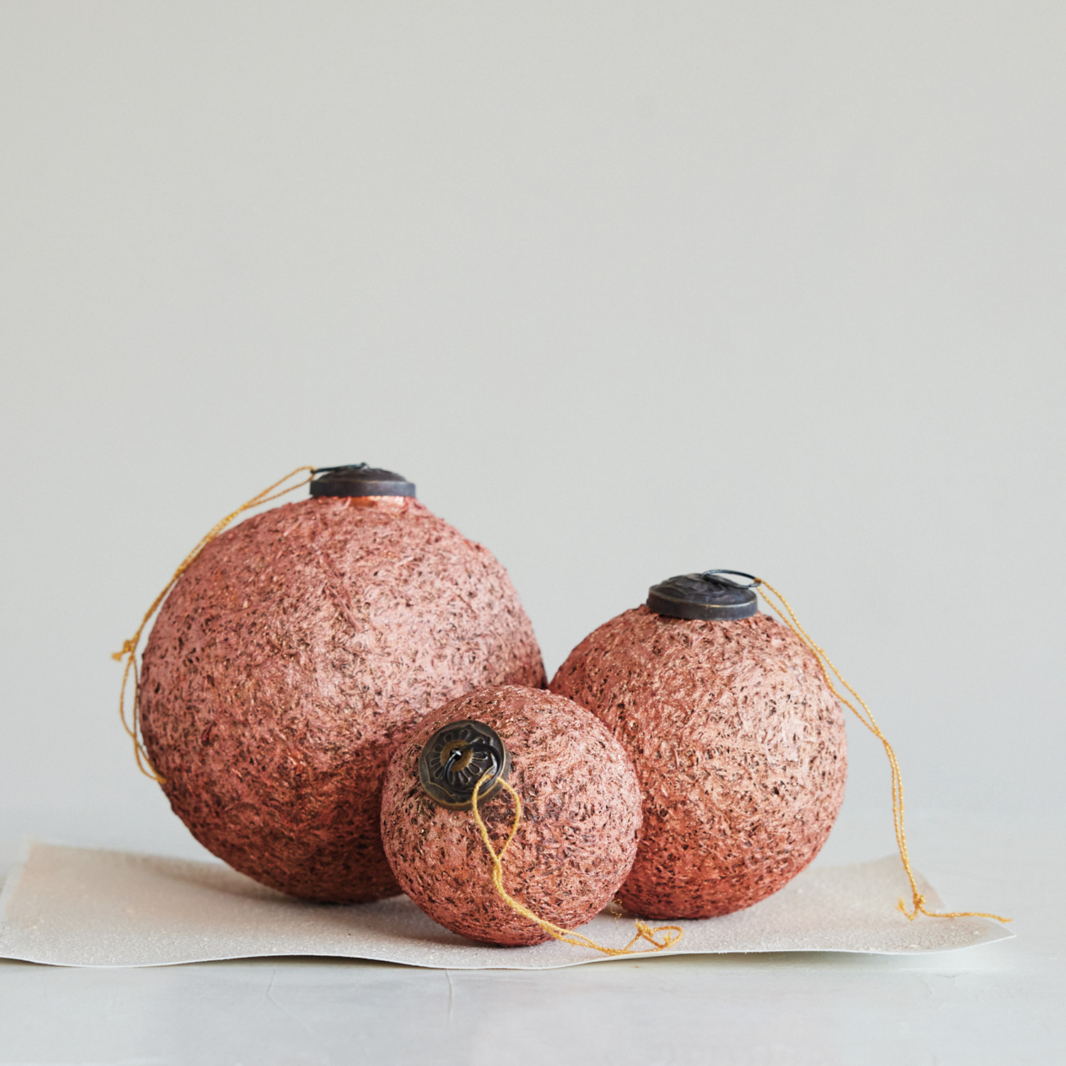 Catalog Name: 3" Round Foiled Glass Ball Ornament, Pink