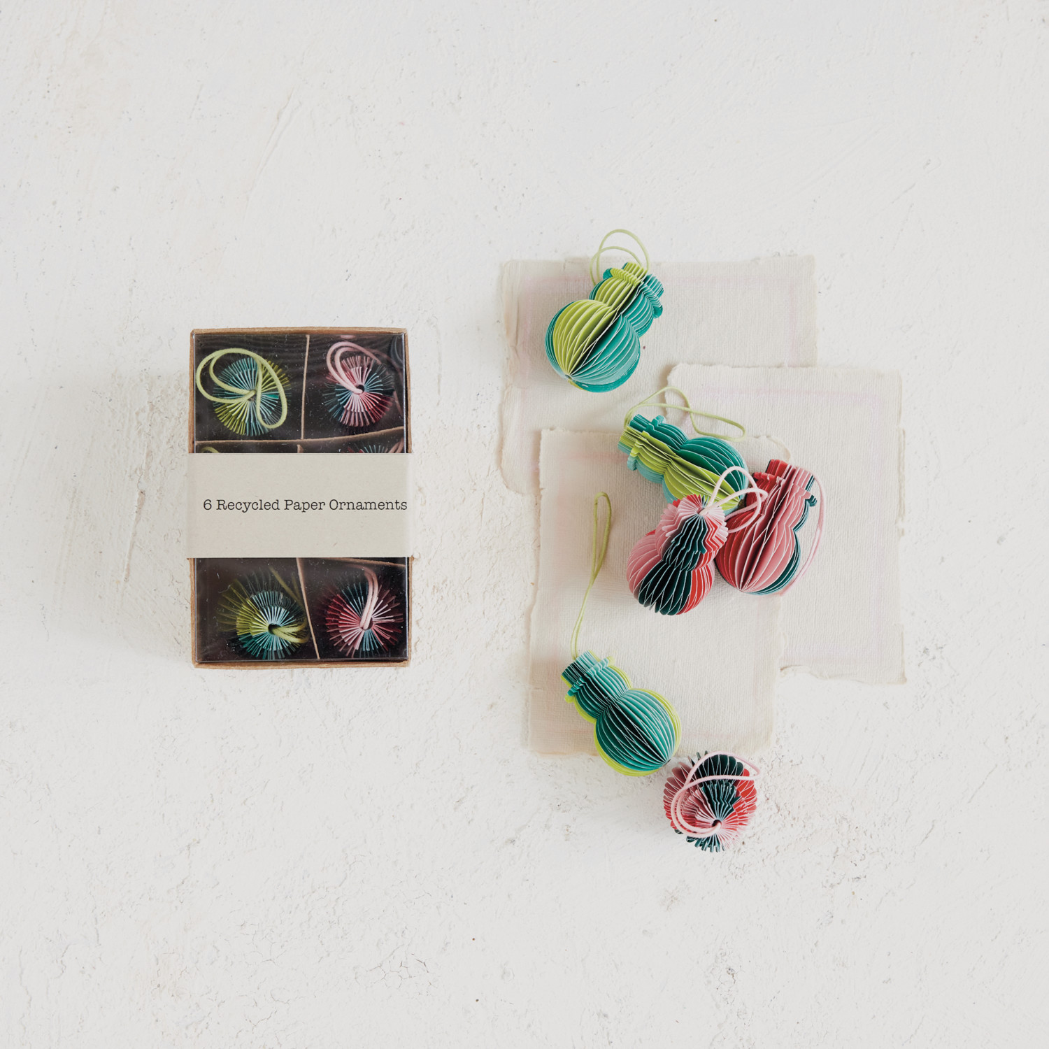 Handmade Recycled Paper Folding Honeycomb Snowman Ornaments, Boxed Set of 6