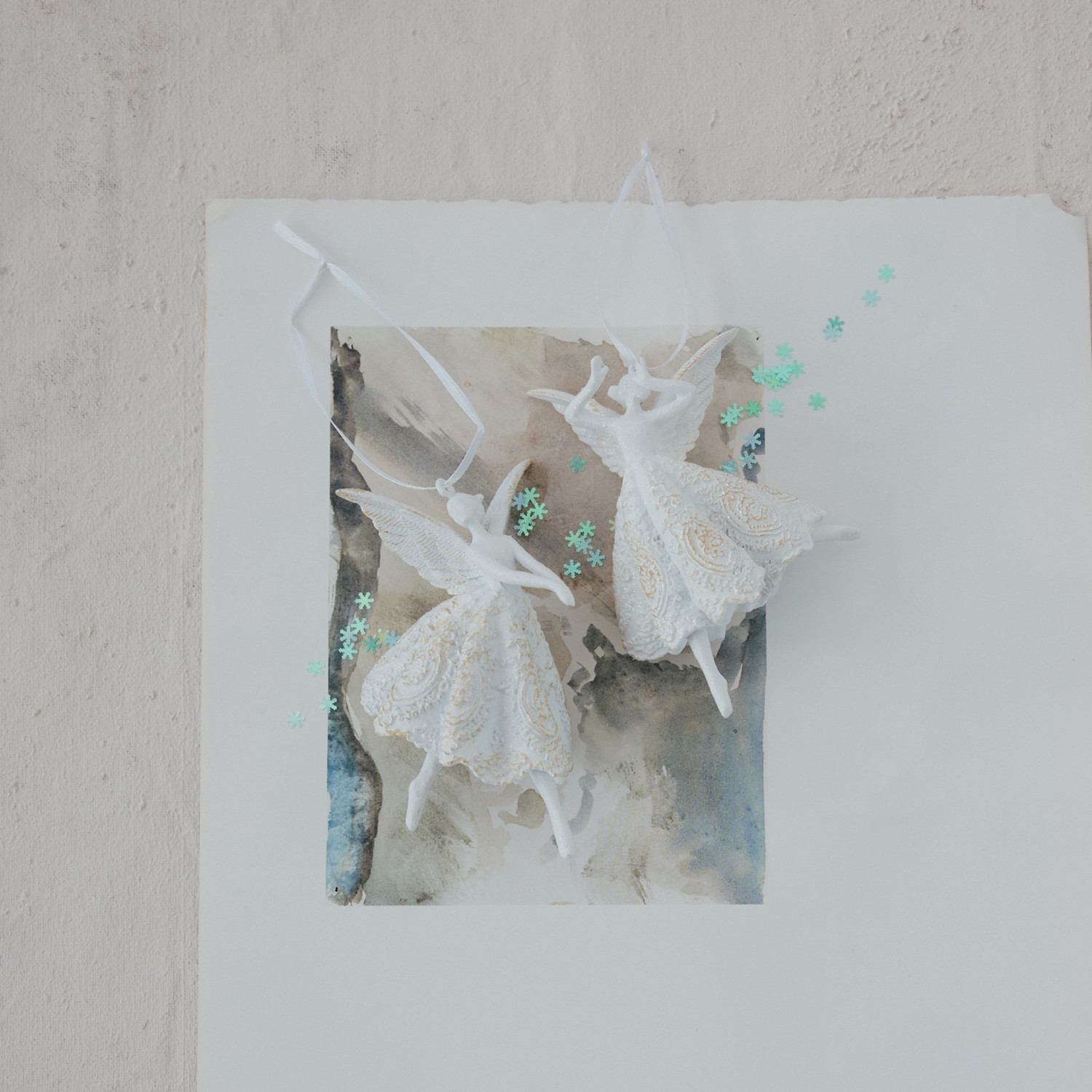 Resin Angel Ornament with Gold Finish Glitter, White, 2 Styles