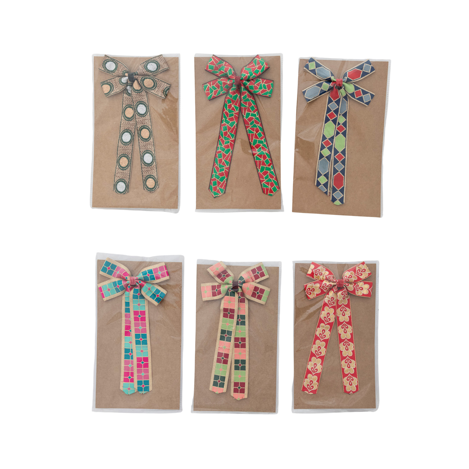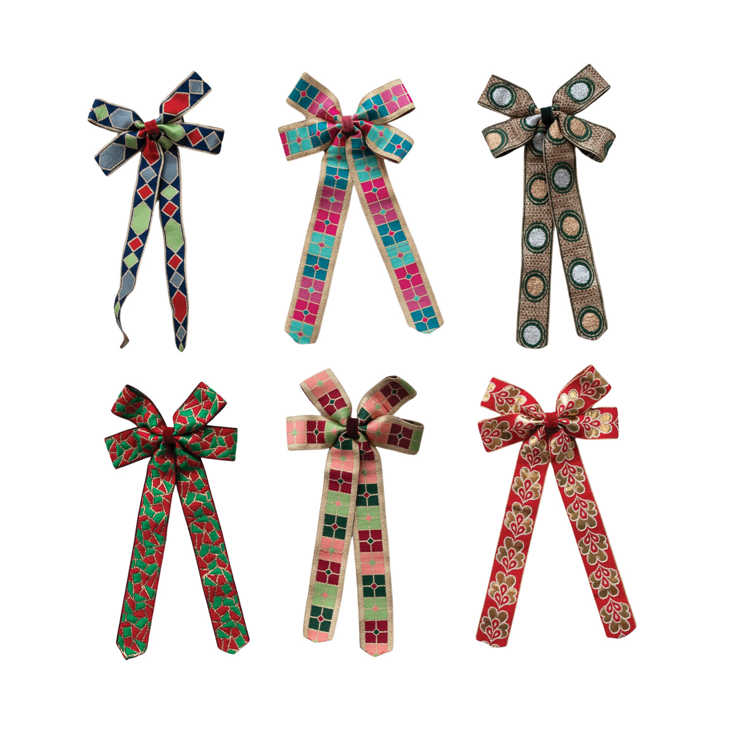 Catalog Name: 5"W x 10"H Fabric Jacquard Clip-on Bow w/ Pattern, Multi Color, 6 Styles