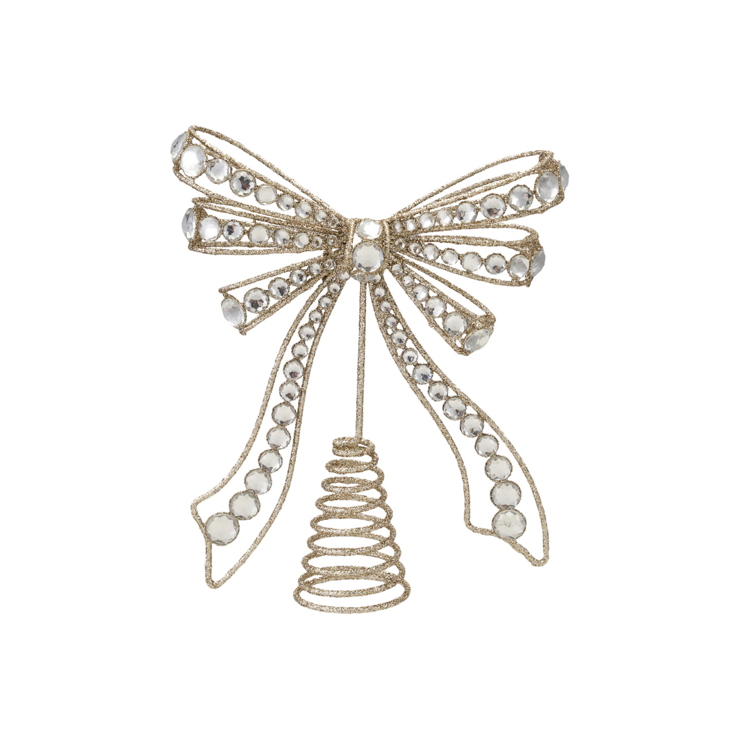 Catalog Name: 8"L x 2-3/4"W x 11"H Metal Bow Tree Topper w/ Acrylic Jewels & Glitter, Champagne Finish