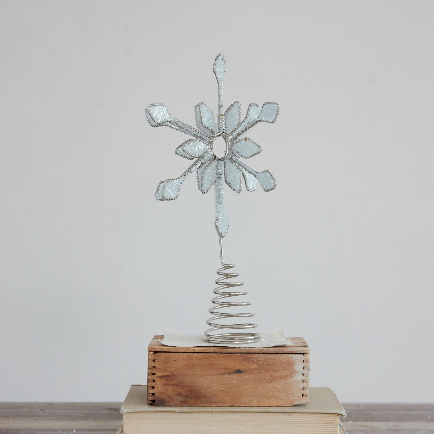 Metal & Glass Beaded Snowflake Tree Topper, Silver Finish