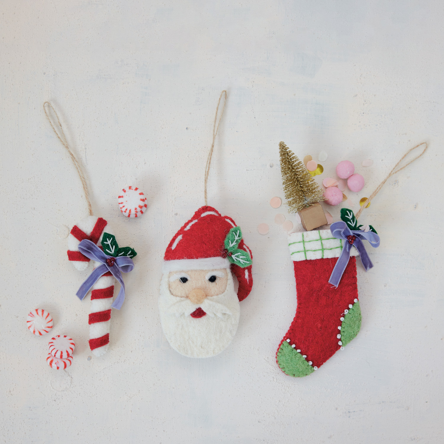 Catalog Name: 5"H Handmade Wool Felt Holiday Icon Ornament w/ Embroidery & Beads, Multi Color, 3 Styles ©