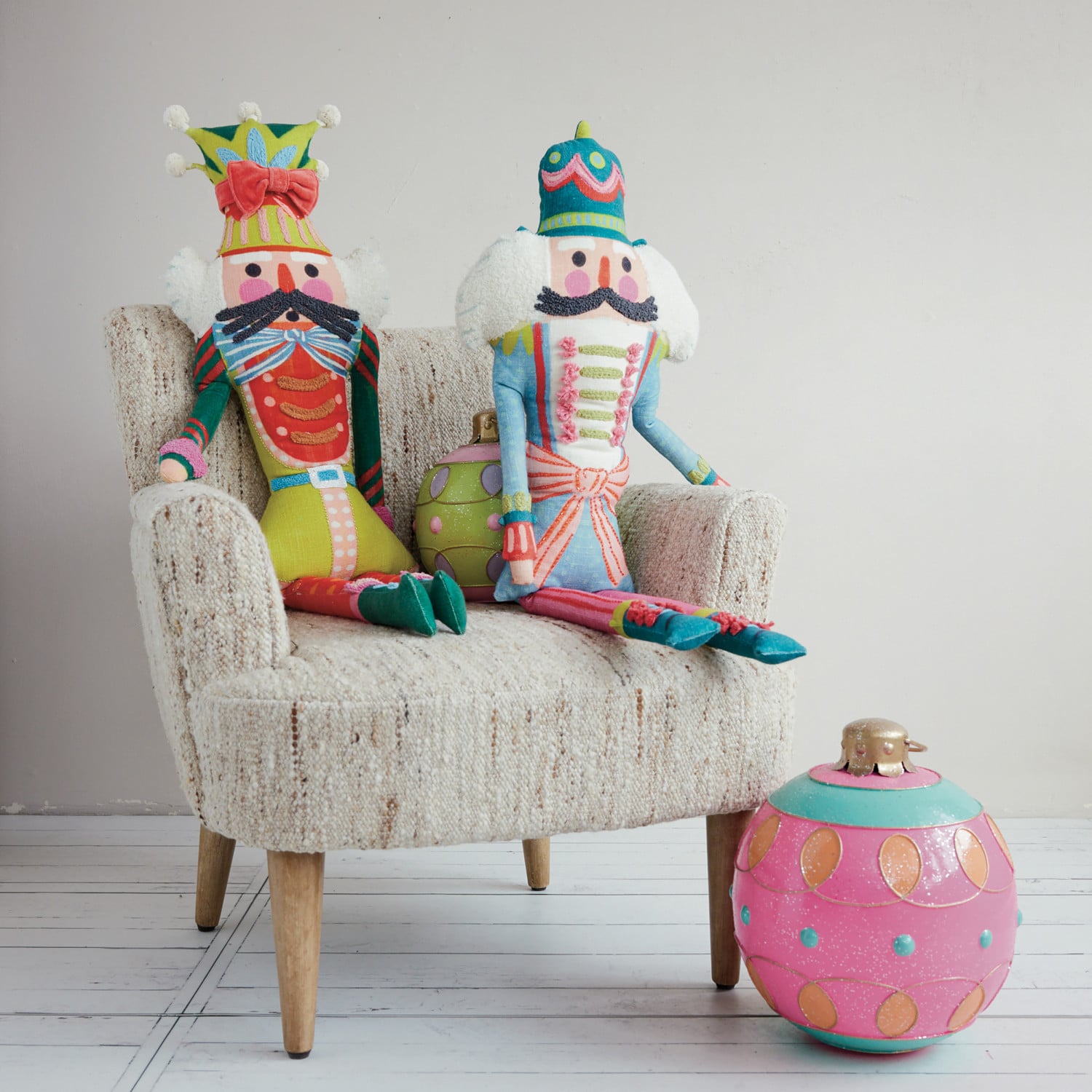 Oversized Painted Metal Ball Ornament with Pattern & Glitter, Green, Pink & Purple