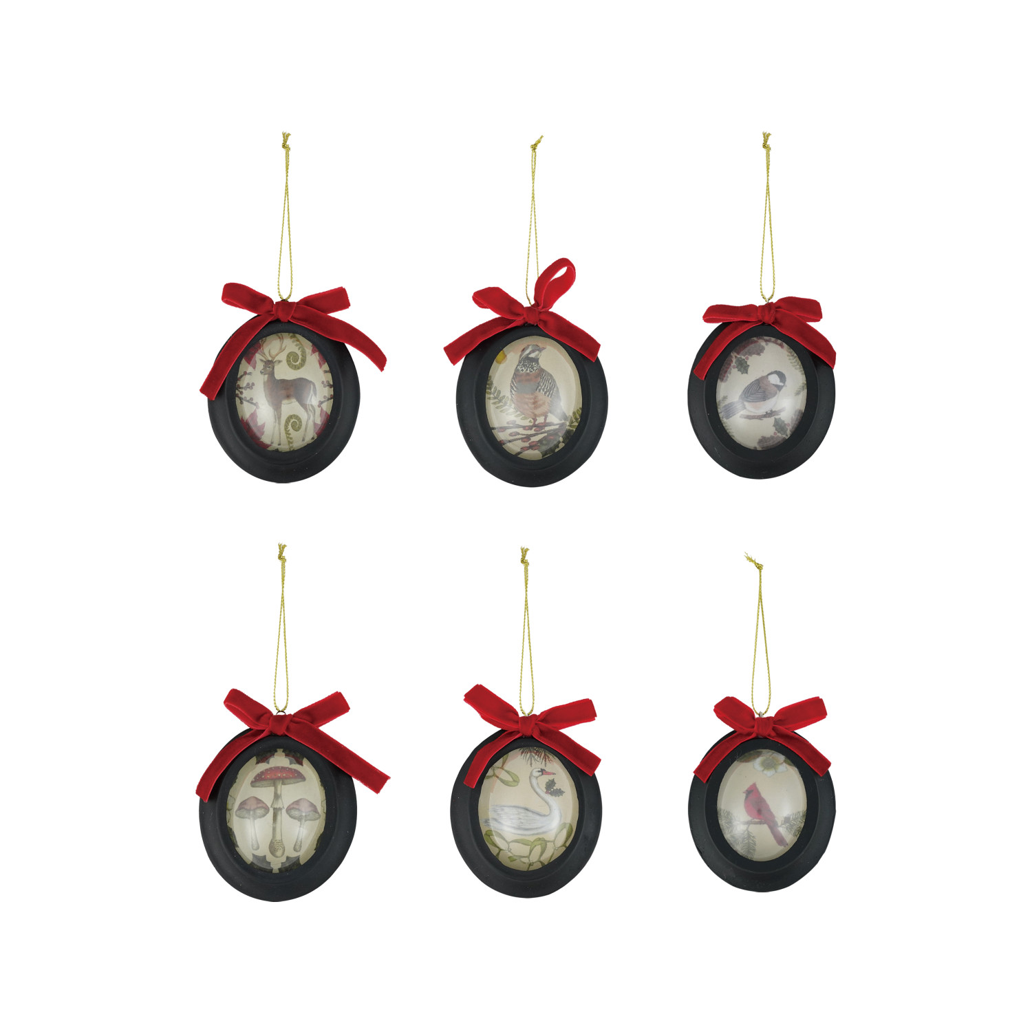 Convex Resin Framed Ornament with Seasonal Botanicals, Animal & Velvet Bow, 6 Styles ©