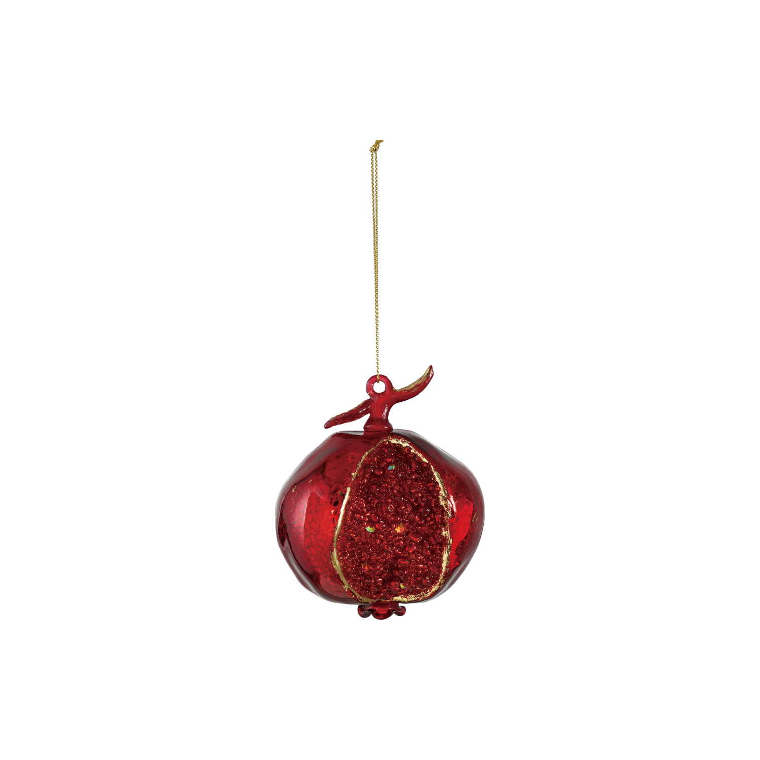 Catalog Name: 4"H Hand-Painted Mercury Glass Pomegranate Ornament w/ Beads, Red & Gold Finish