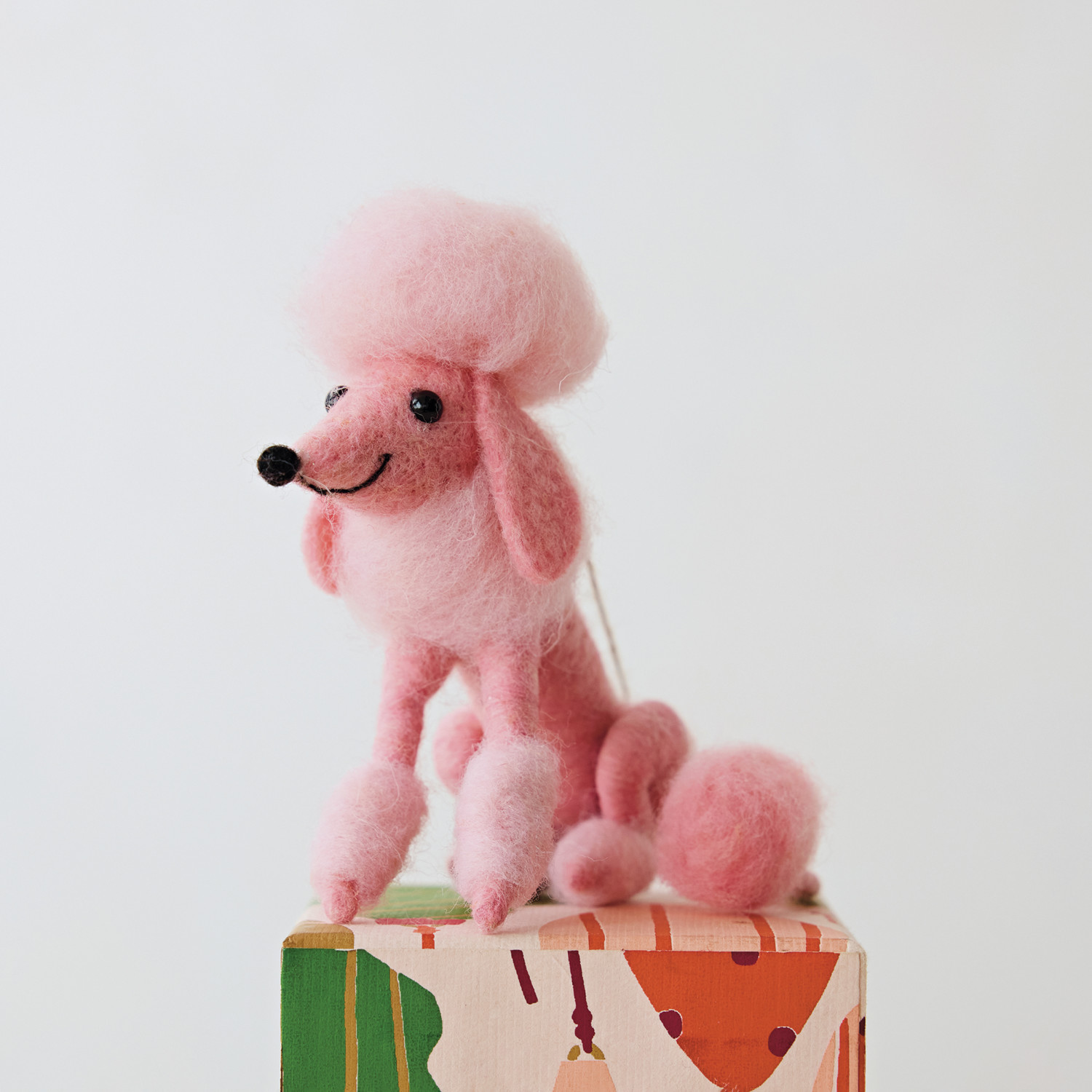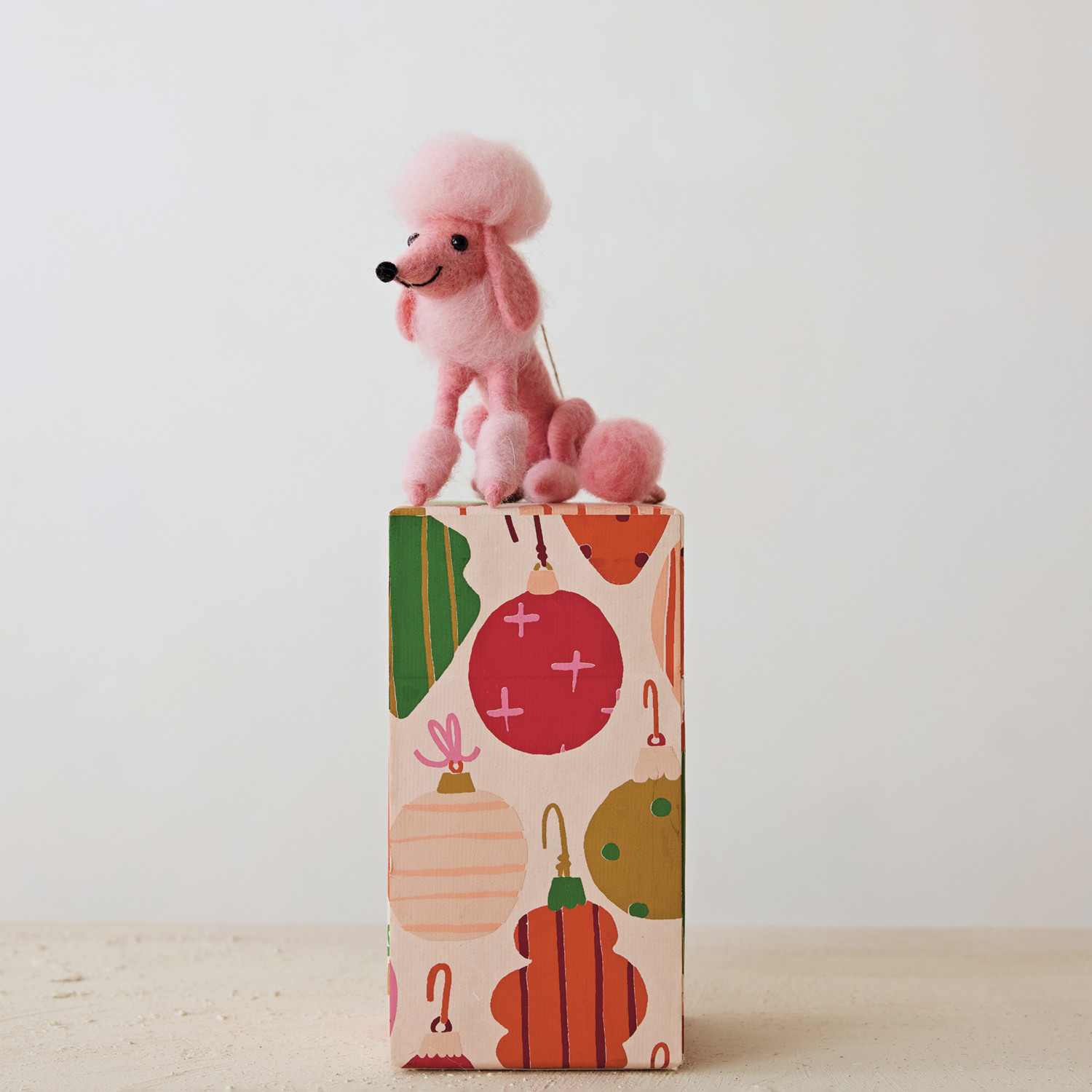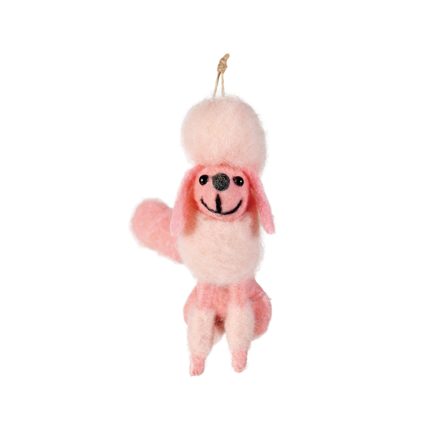Handmade Fabric & Wool Felt Poodle Ornament, Pink & Black