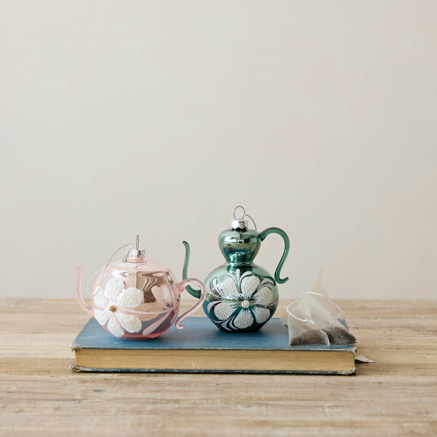 Hand-Painted Glass Teapot Ornament with Flower, 2 Styles