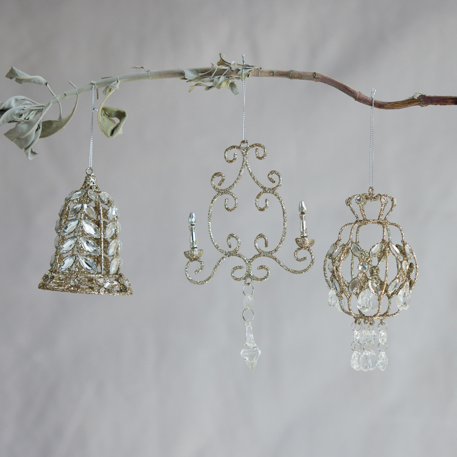 Catalog Name: 4-1/4"H Metal Bell Ornament w/ Acrylic Jewels & Glitter, Champagne Finish