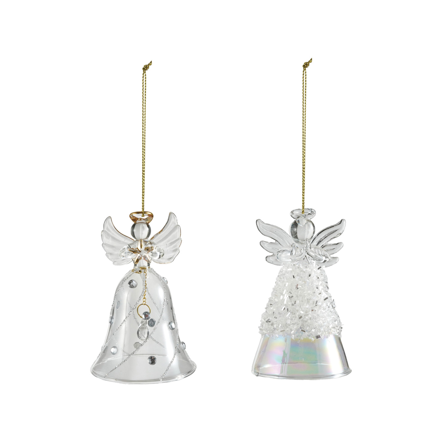 Catalog Name: 2-1/4" Round x 4"H Glass Angel Ornament, Iridescent Finish, 2 Styles (Hangs or Sits)