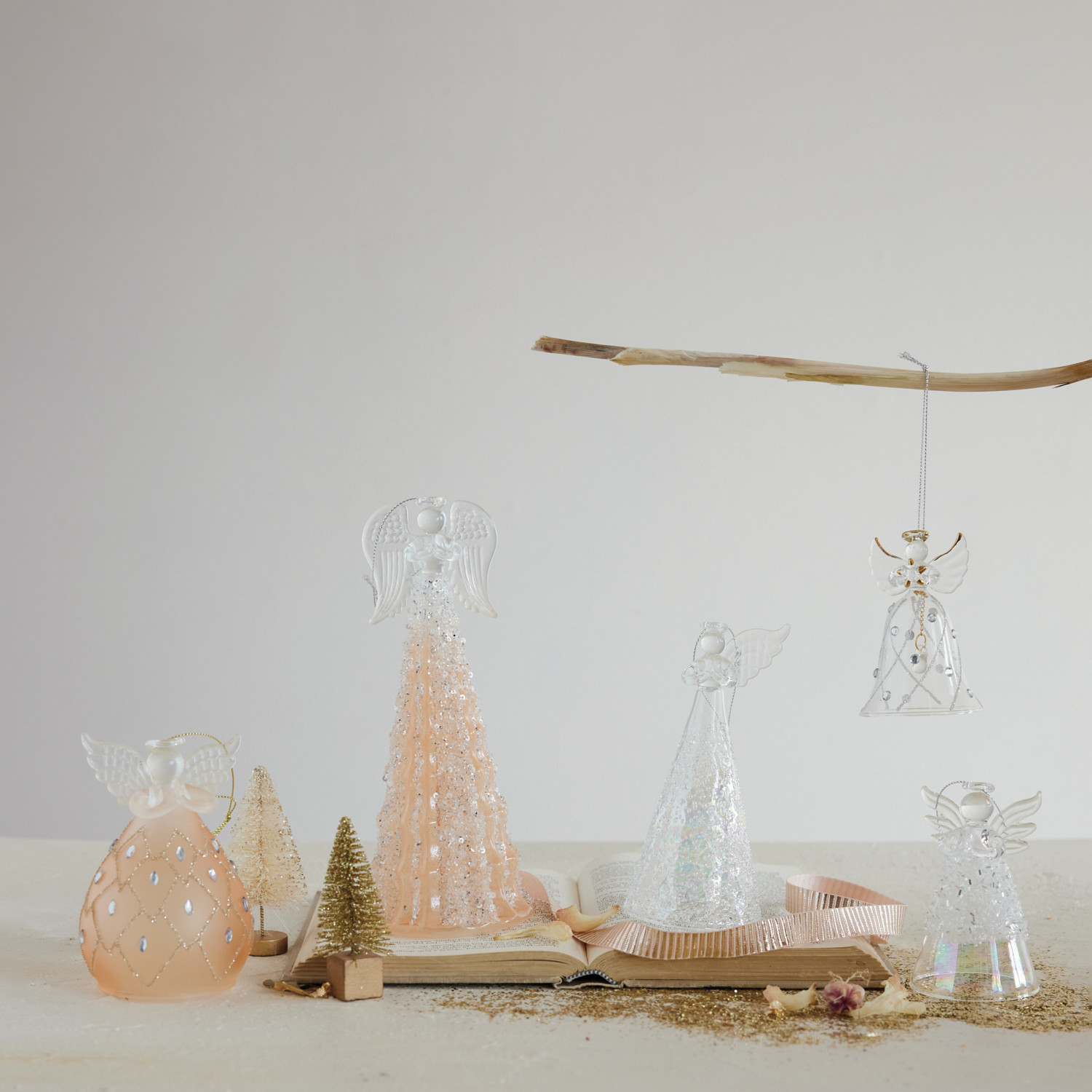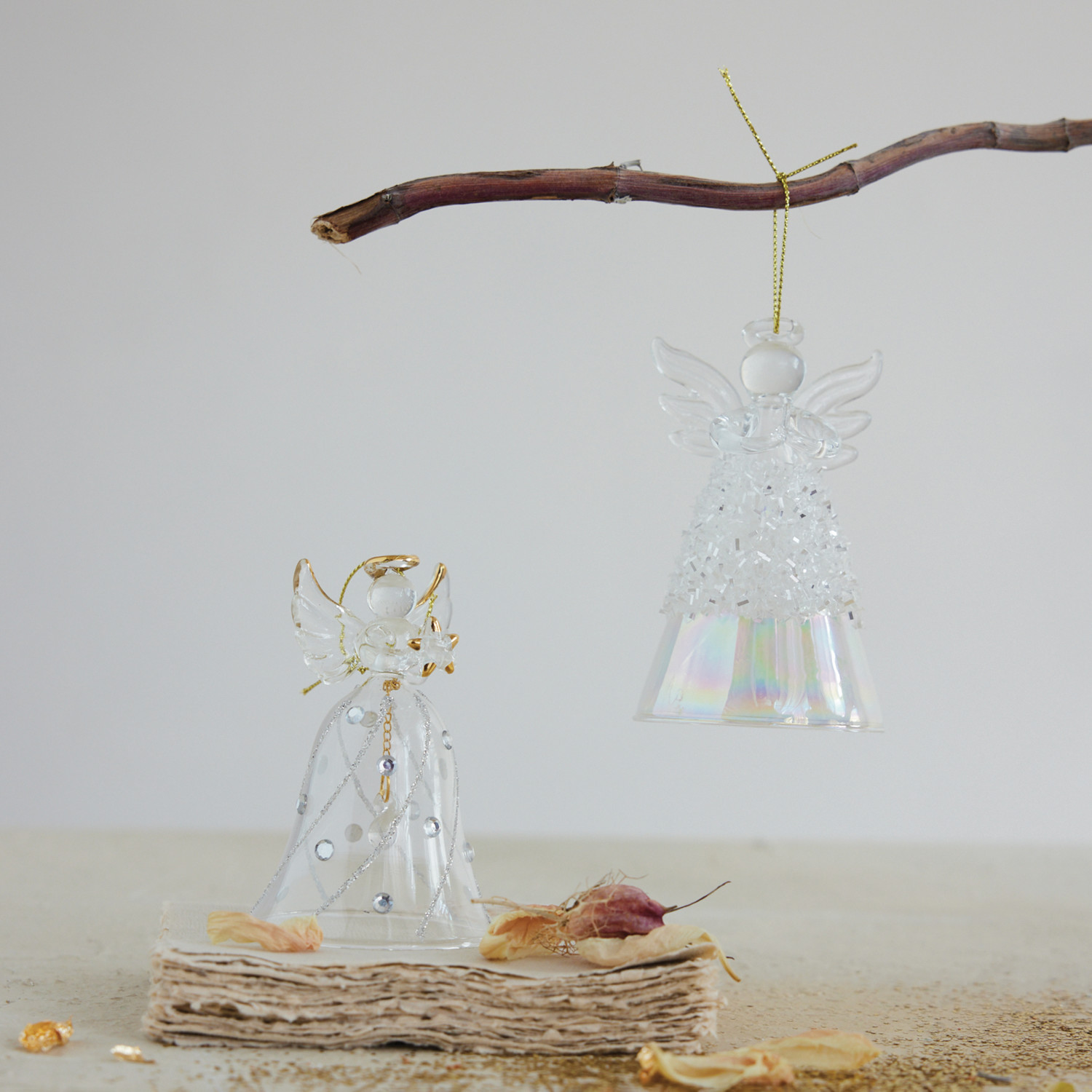 Glass Angel Ornament, 2 Styles (Hangs or Sits)