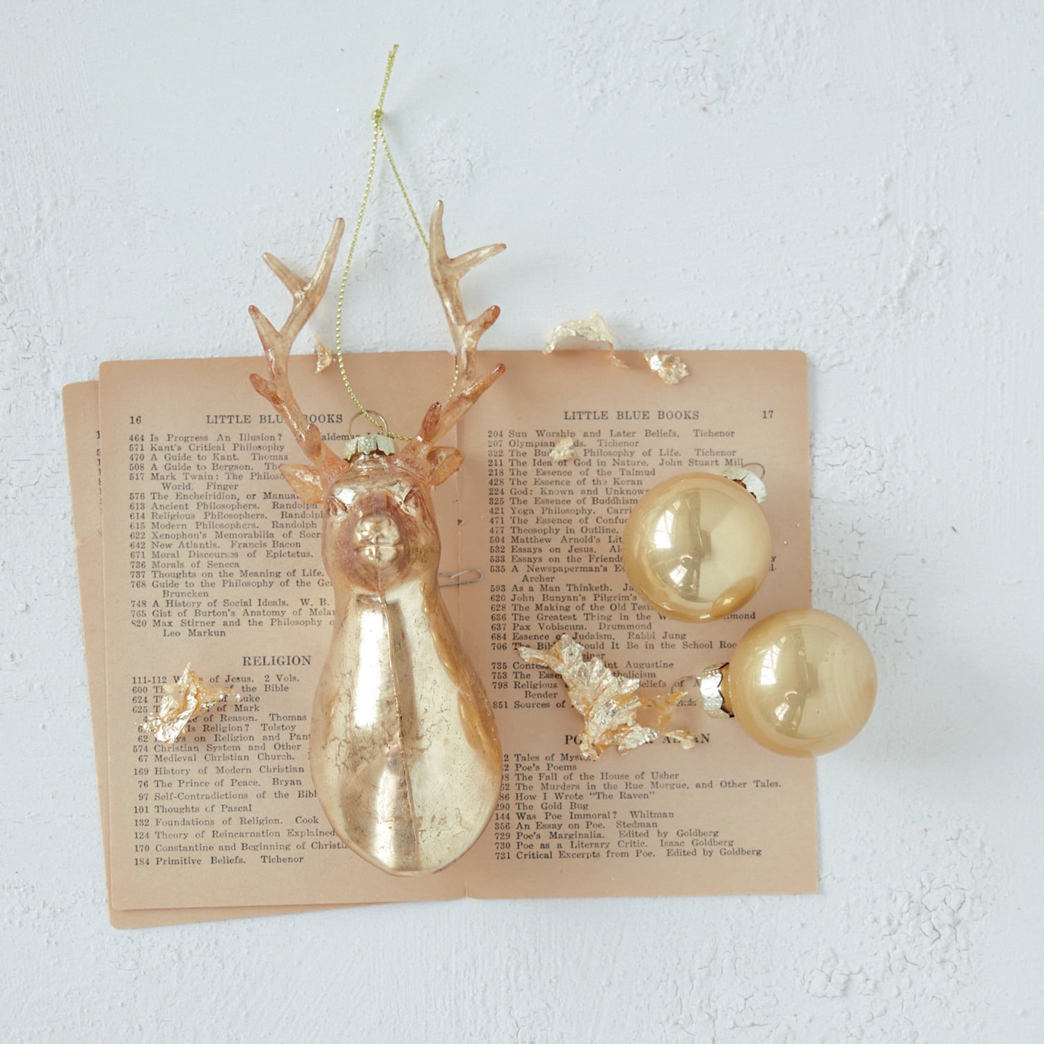 Catalog Name: 6"H Mercury Glass Deer Head Ornament, Gold Finish