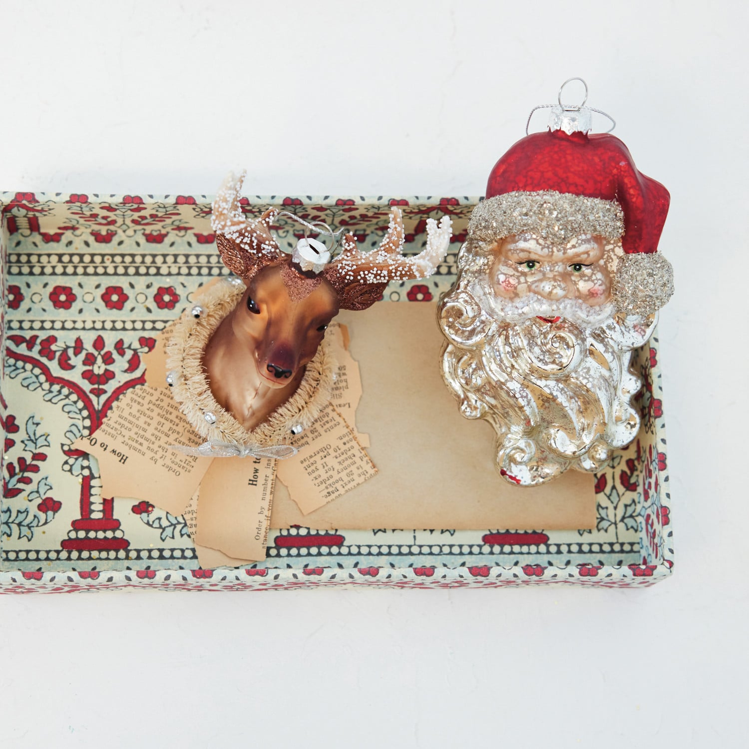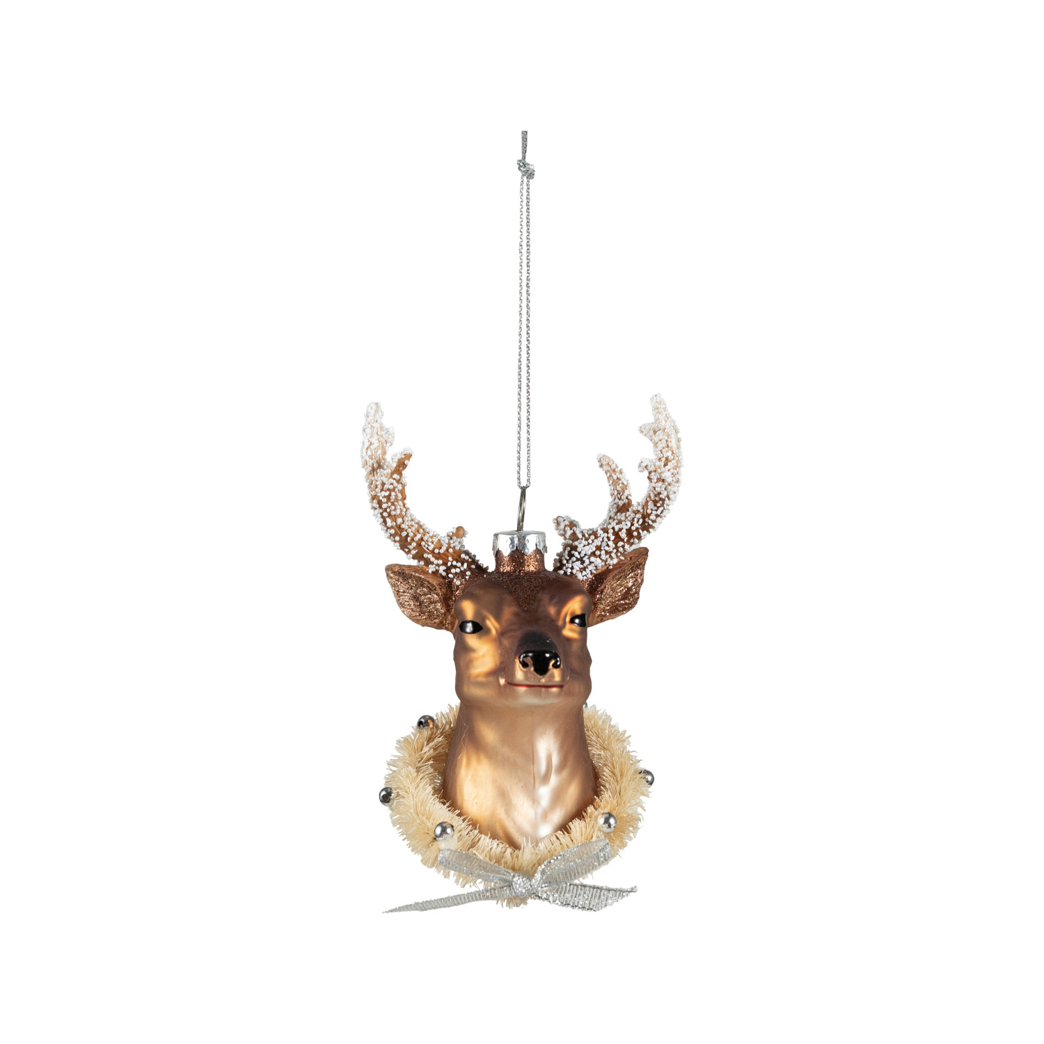 Hand-Painted Glass Deer Head Ornament with Wreath, Beads, Glitter & Bow