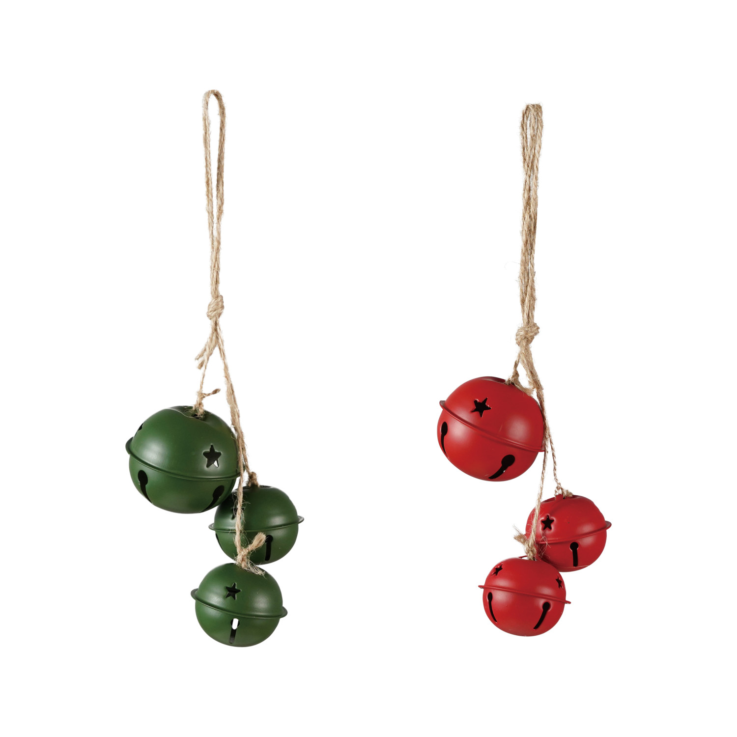 Catalog Name: 9"H Hanging Metal Jingle Bells w/ Star Cut-Outs, 2 Colors