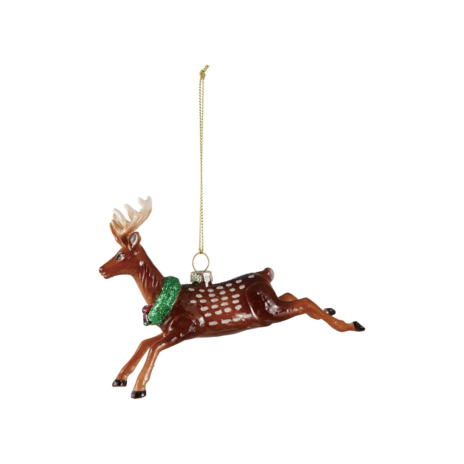 Catalog Name: 4-3/4"L Hand-Painted Glass Deer Ornament w/ Wreath, Multi Color
