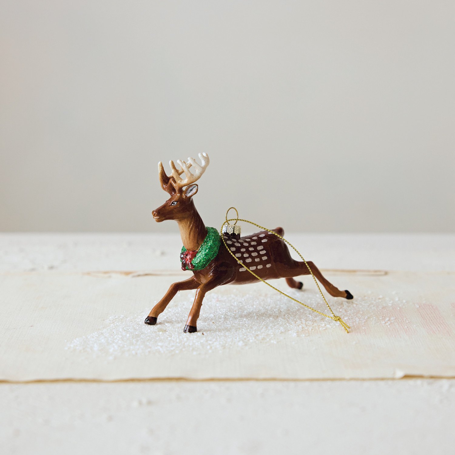 Hand-Painted Glass Deer Ornament with Wreath