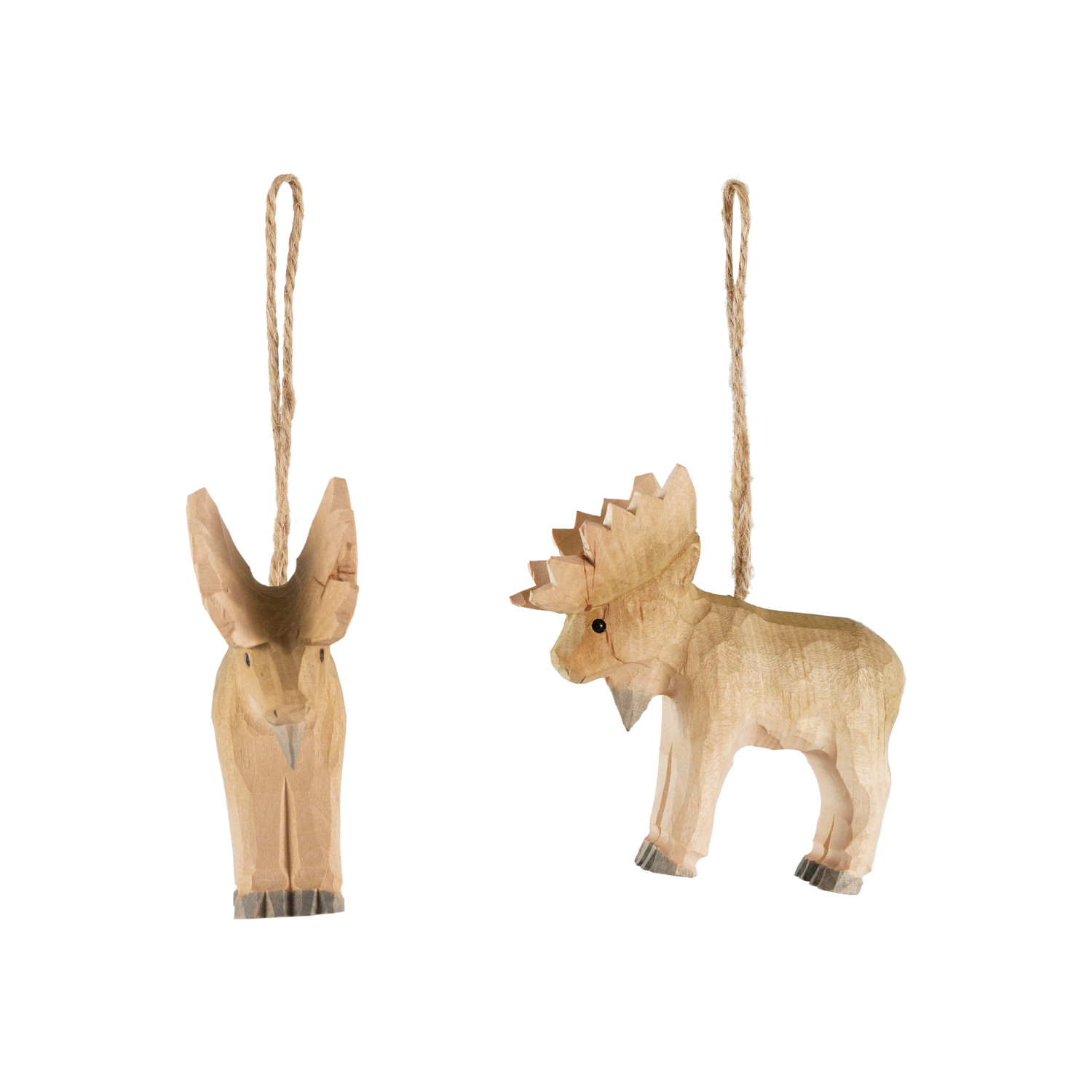 Hand-Carved Wood Moose Ornament, Natural