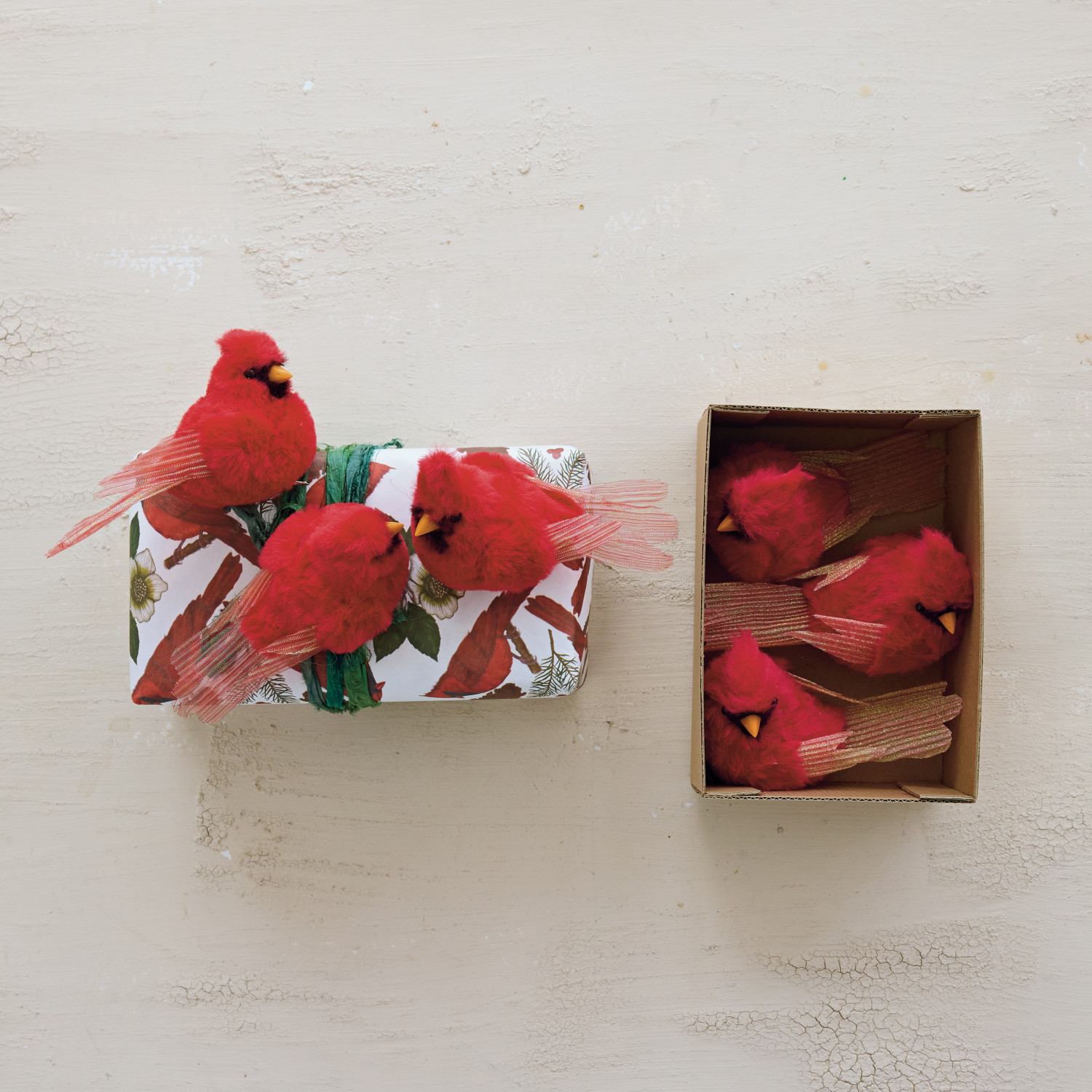 Catalog Name: 5-1/2"L x 4"H Faux Fur & Fabric Cardinal Clip-on Ornaments w/ Glitter, Red, Boxed Set of 3