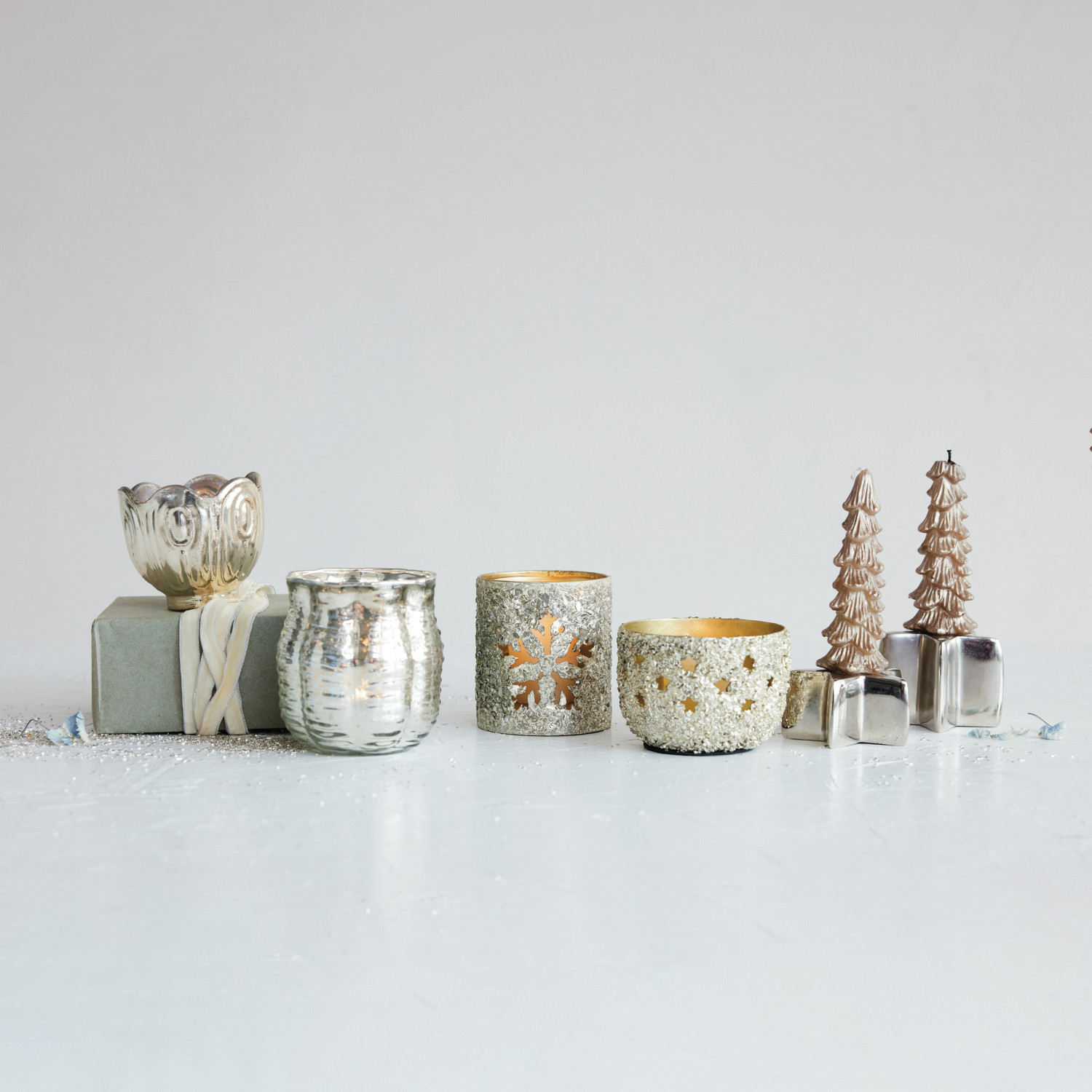 Embossed Mercury Glass Scalloped Tealight/Votive Holder, Silver Finish, 2 Styles