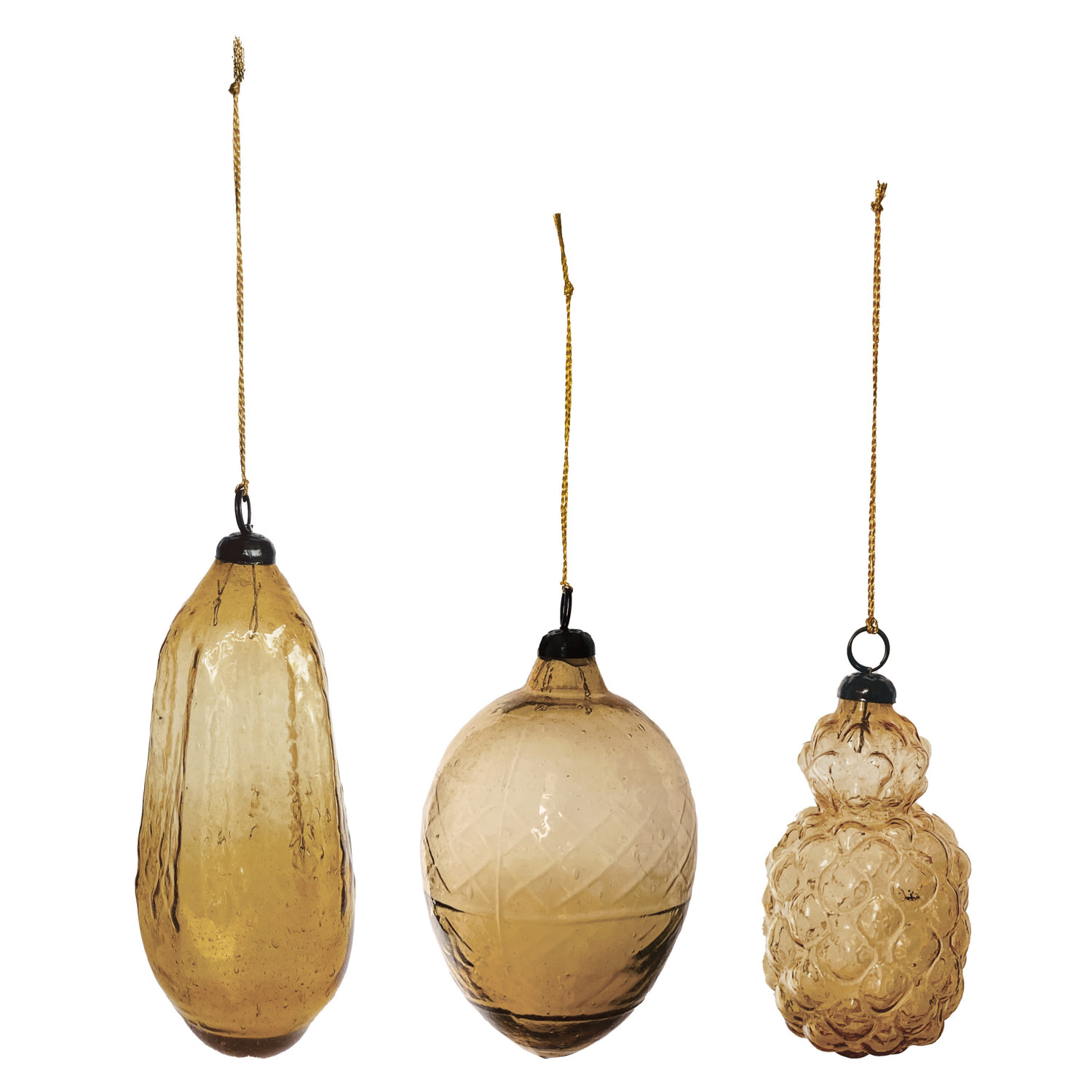 Hand-Blown Glass Ornament, Amber Color, 3 Styles