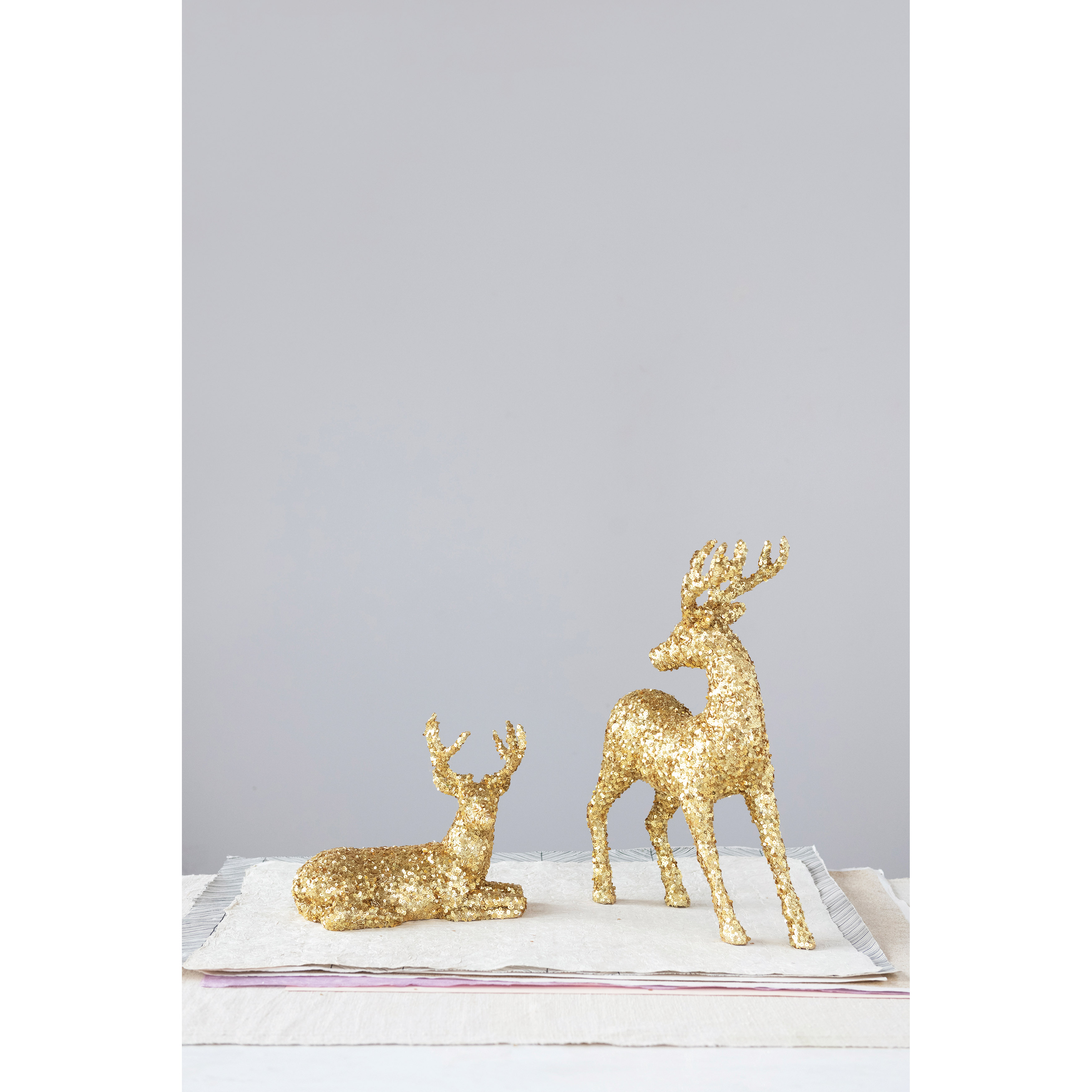 Catalog Name: 10-3/4"L x 5"W x 9"H Resin and Sequin Deer, Gold Finish