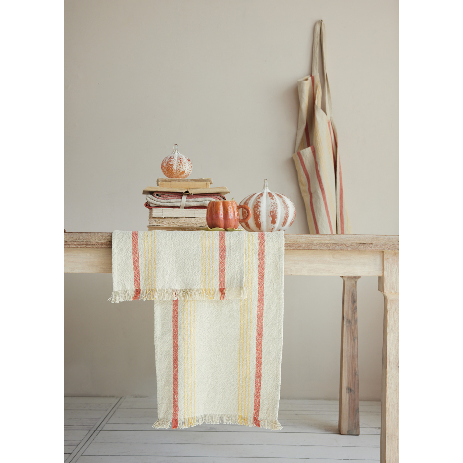 Woven Cotton Striped Table Runner with Eyelash Fringe